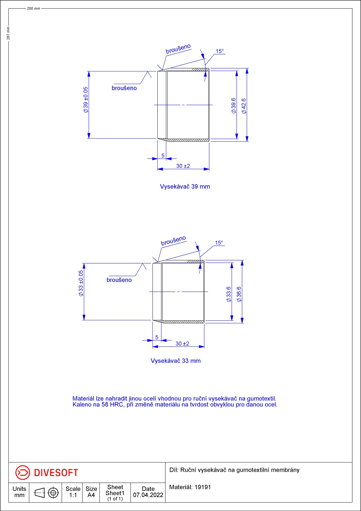 prochaska píše: 8. 4. 2022, 8:19 Tohle provedení znám, dají se upnout do ručního lisu. Jen se mi je nepovedlo sehnat v těchto rozměrech, až jsem si začal myslet, že je nikdo nevyrábí. Mají spíš trochu nevýhodu ve větším úhlu břitu, tu moji membránu napřed stlačí a vyseknou pak křivě, tak uvidíme co s tím půjde :-)