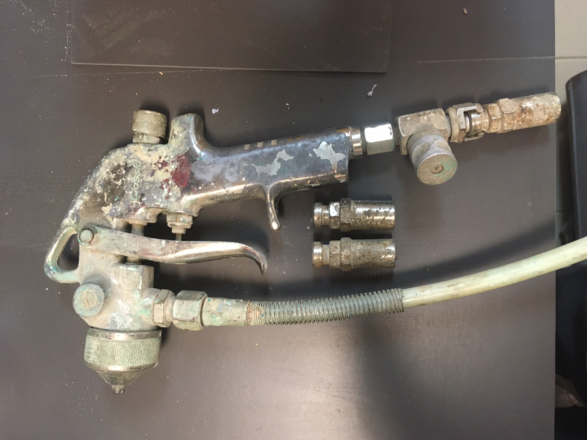 1. Stará stříkací tlaková pistole na barvu, jehla i sedlo vypadá v pořádku a uvnitř není zaschlá cena 99Kč