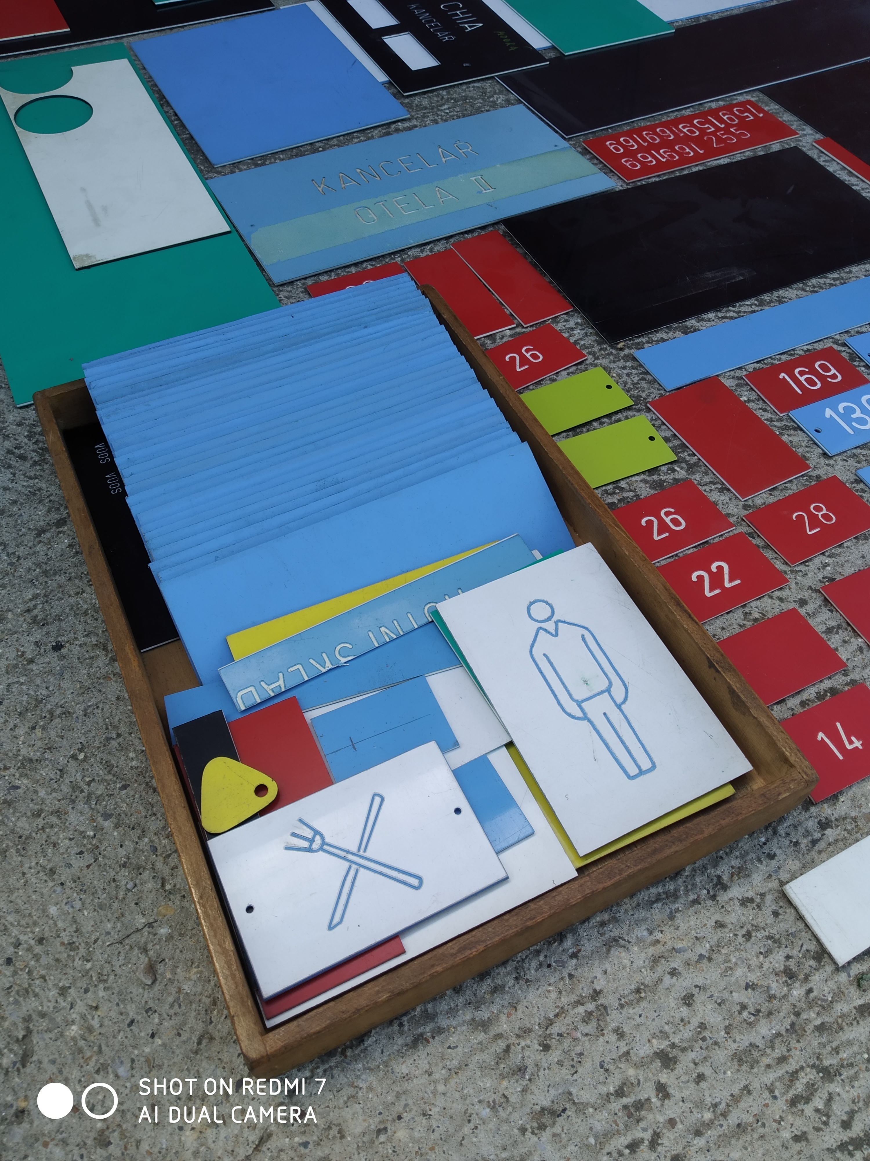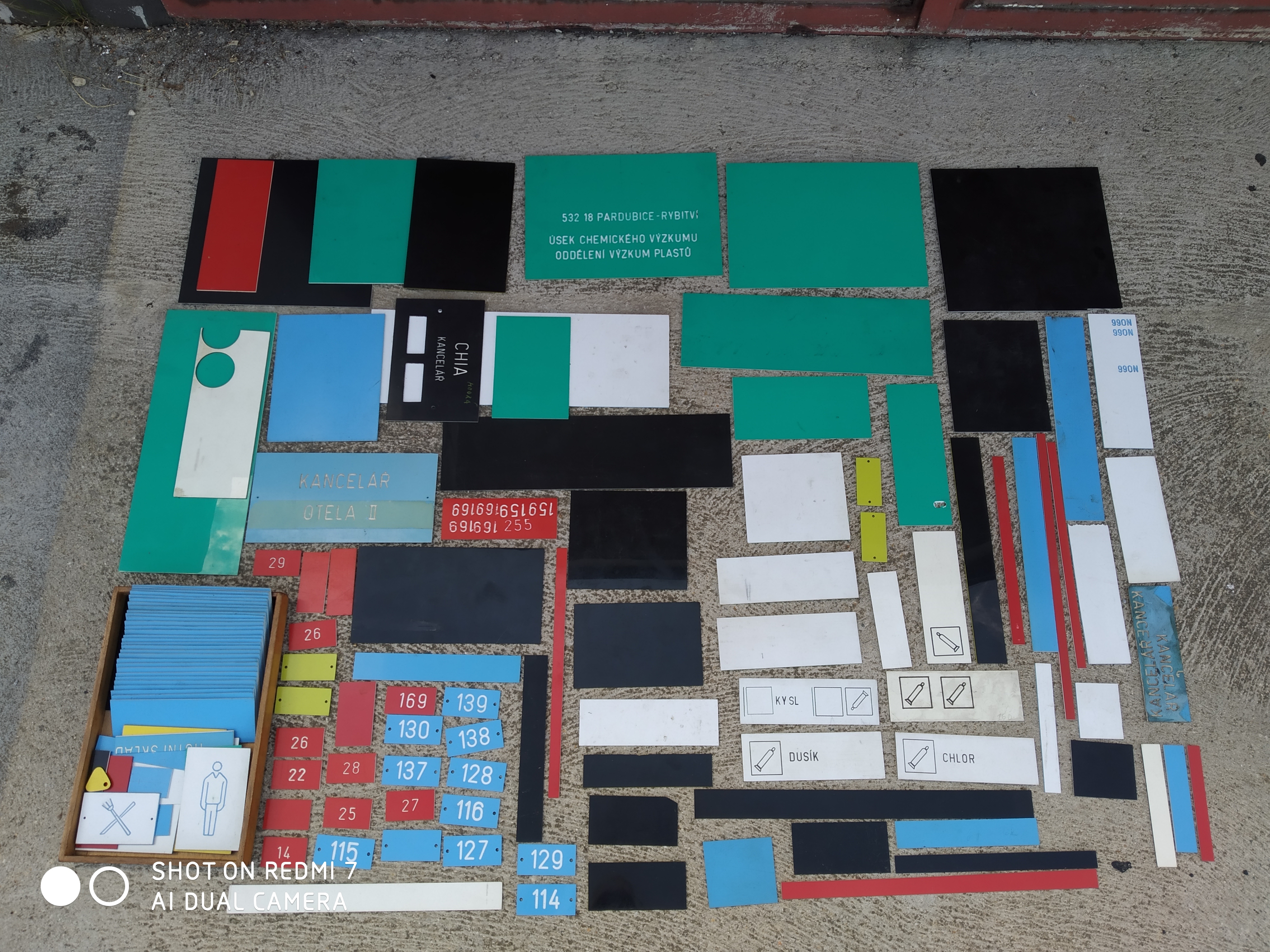 Prodám plastové třívrstvé desky na štítky, různé formáty, barvy, viz foto.