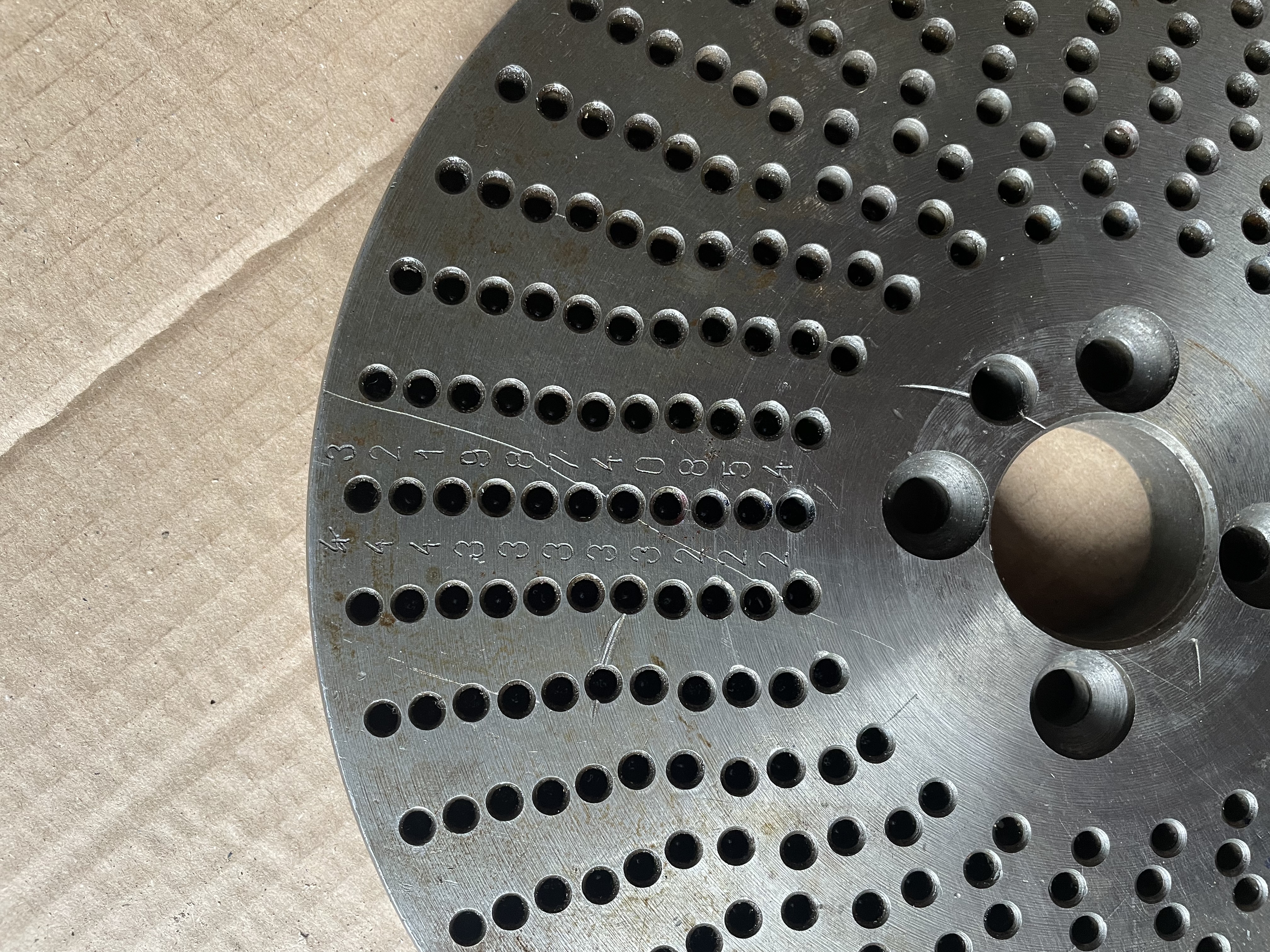 Mohl bych požádat o rozměry u dělícího kotouče. Vnitřní průměr a rozteč děr pro šrouby přes střed?