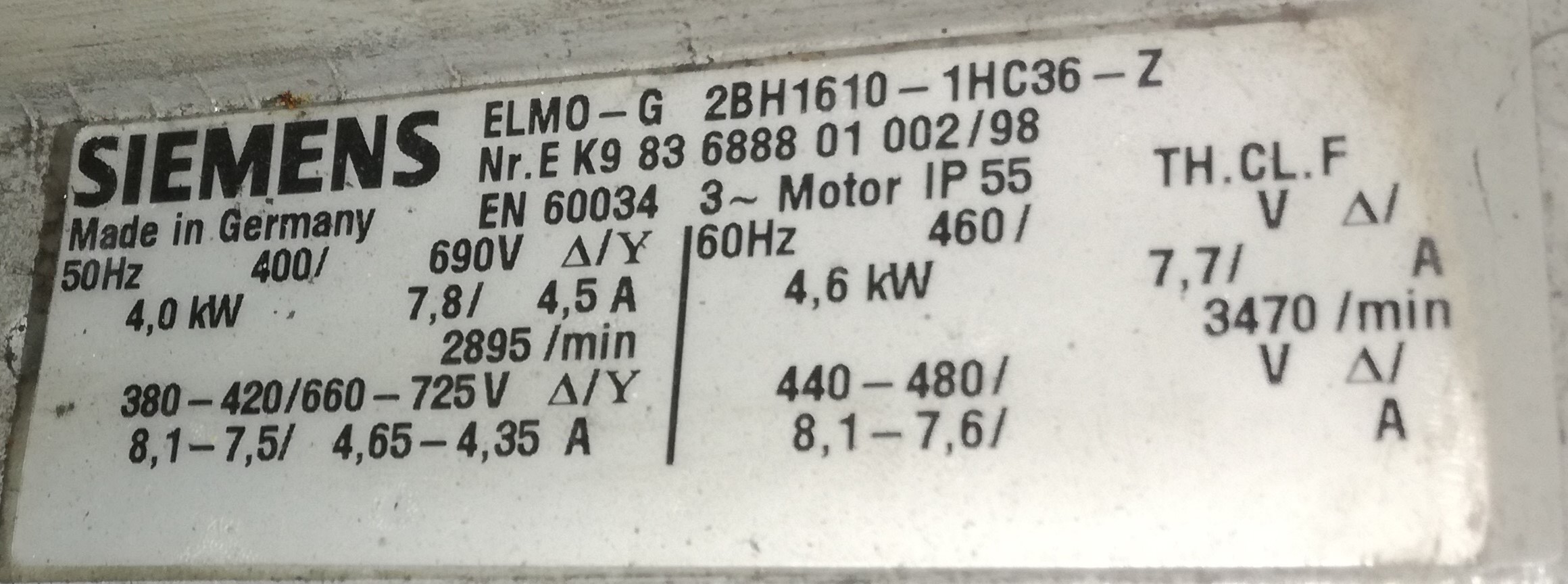 1. Dúchadlo/Výveva - Siemens ELMO-G 2BH1610-1HC36-Z 4kW
