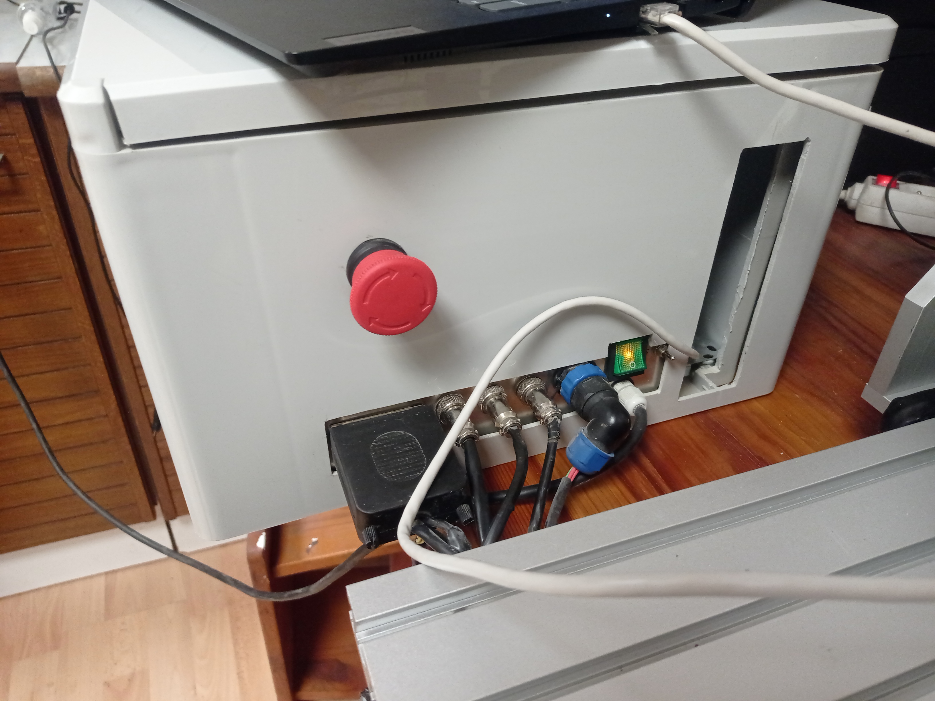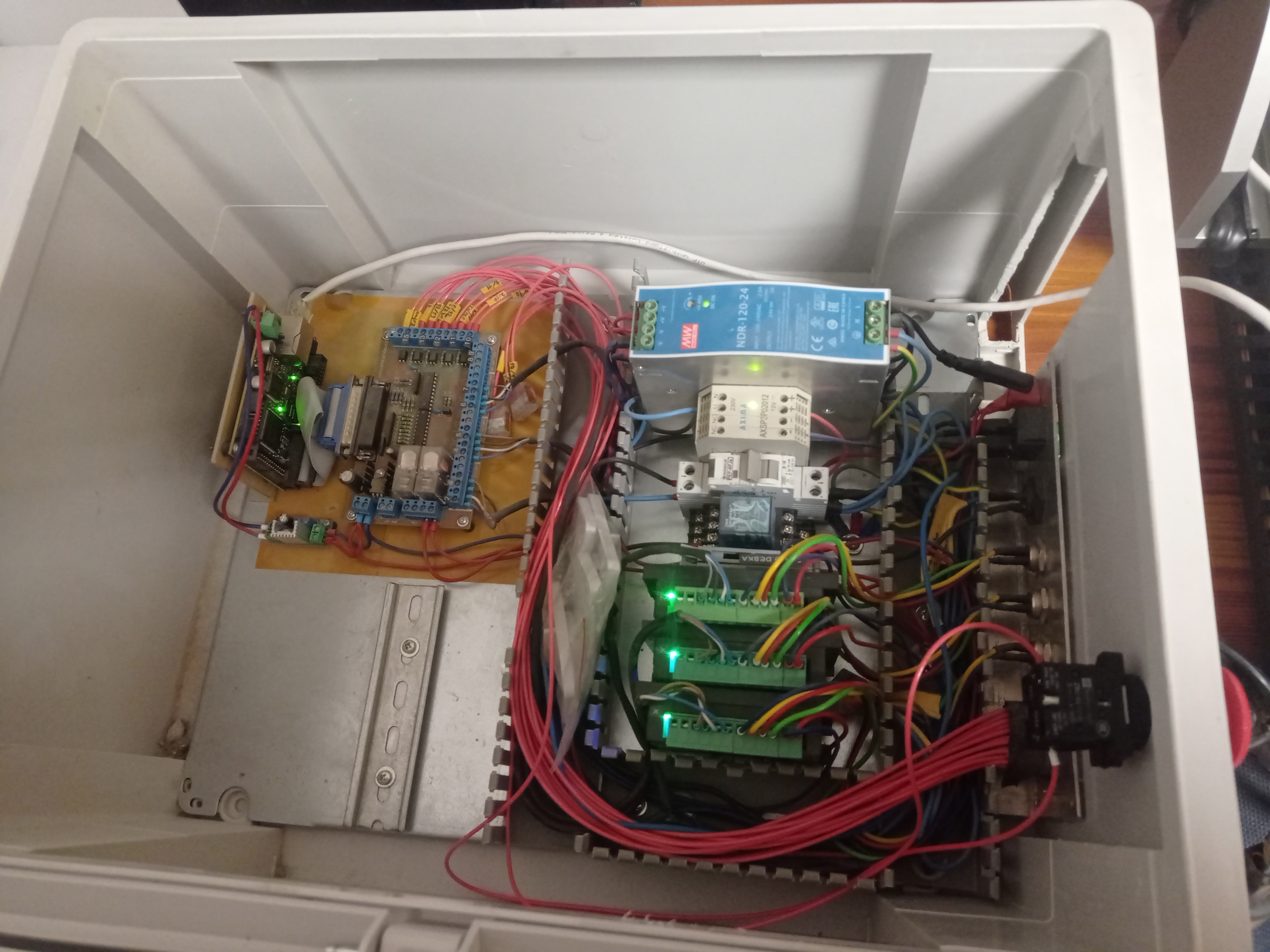Zapojený externí central stop, všechny kabely jsou na vstupu do rozvaděče na konektorech.