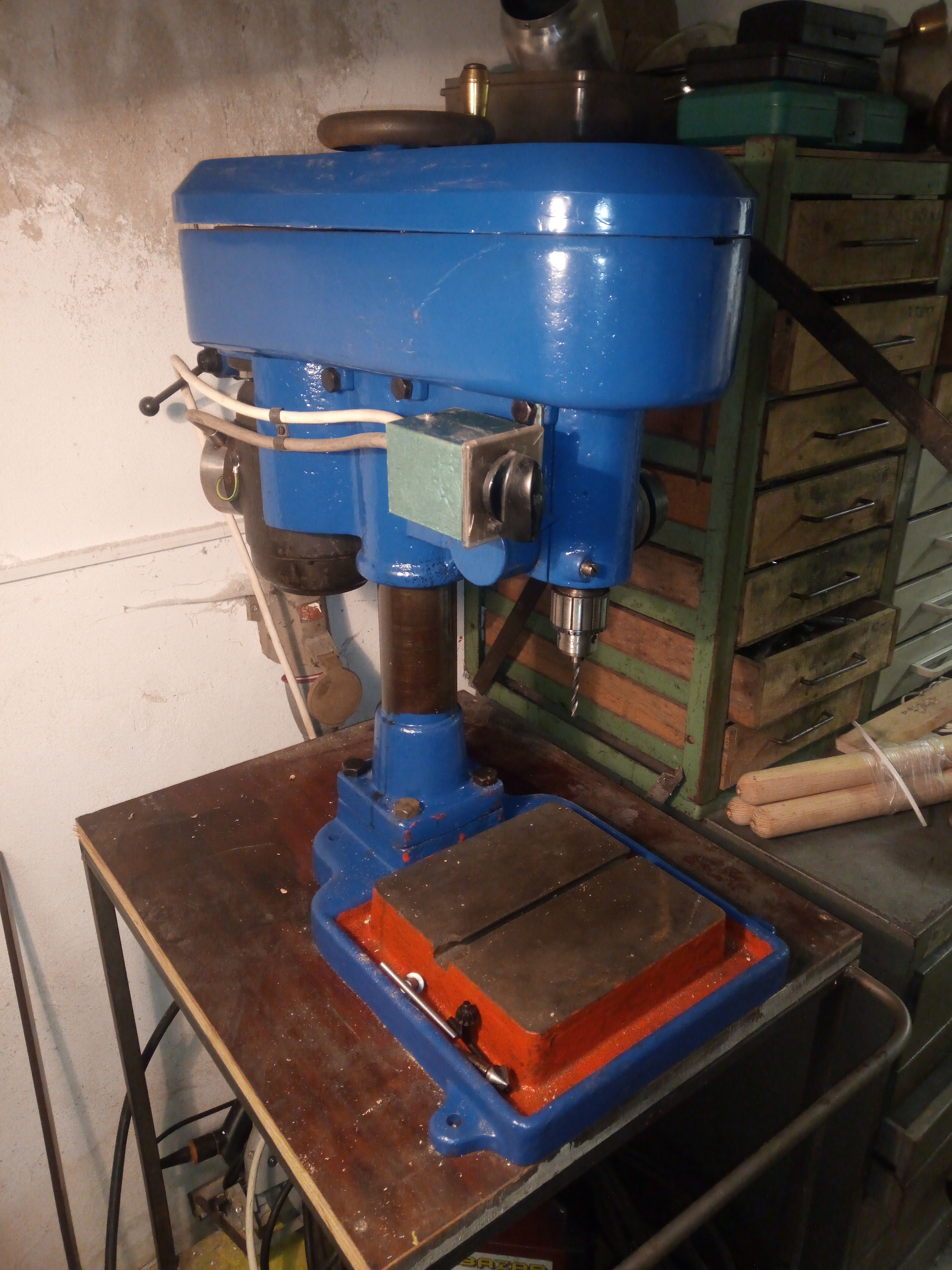 Velikostně jako v10, výrobce Oldřich Landa Olomouc, v dobrém stavu, p/l chod, vřeteno zajíždí jak má, výsuv 60mm, doraz hloubky, páka se dá přeotočit. Jediná vada je kus vylouplé drážky, už takto pořízeno. 4 rychlosti. 8tis inflačních korun.