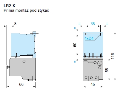 Rozměry této sestavy vit přiložený obrázek. Hloubka nabude ještě o 31mm o nacvaknutý blok pomocných kontaktů na stykači.