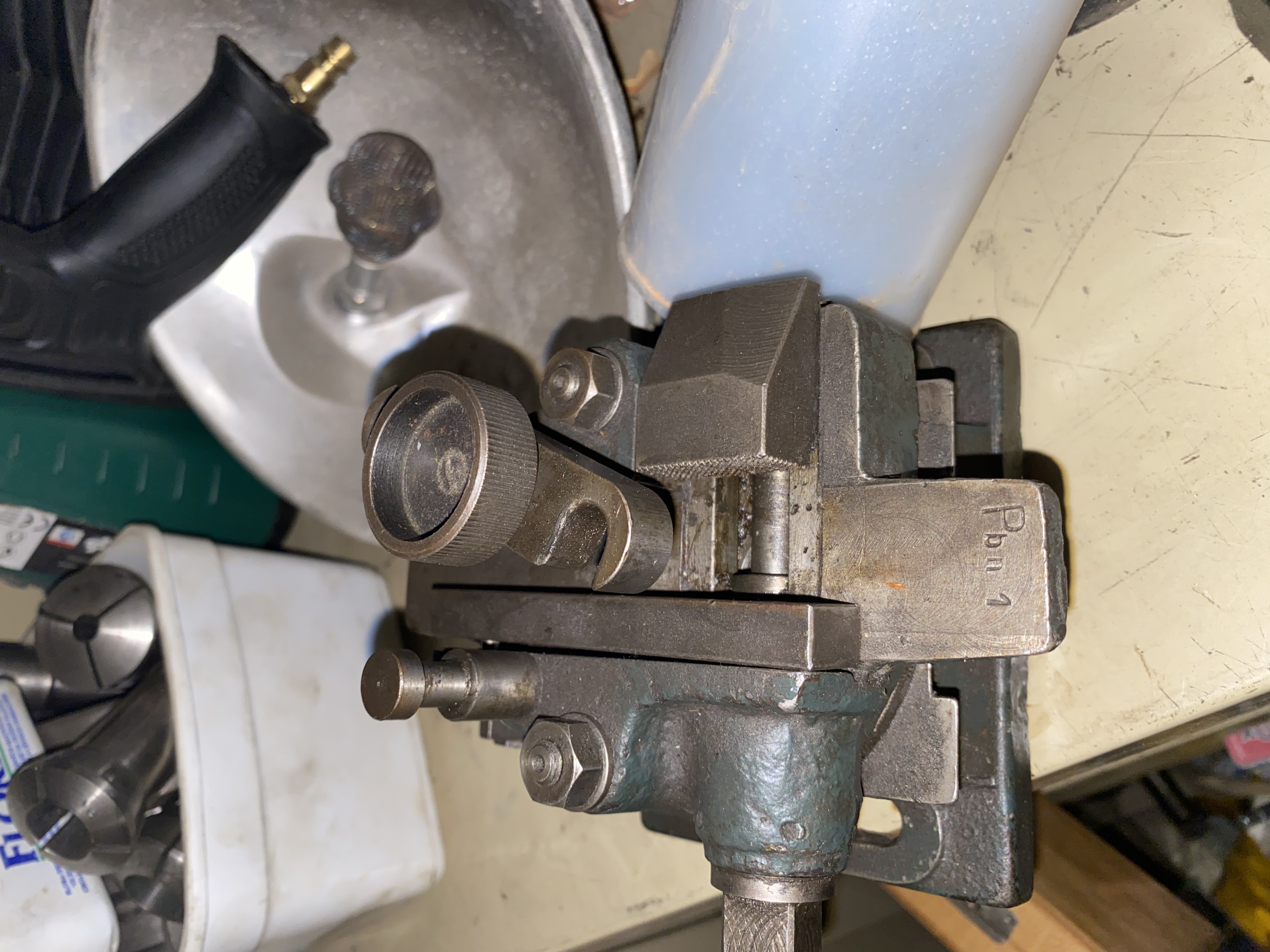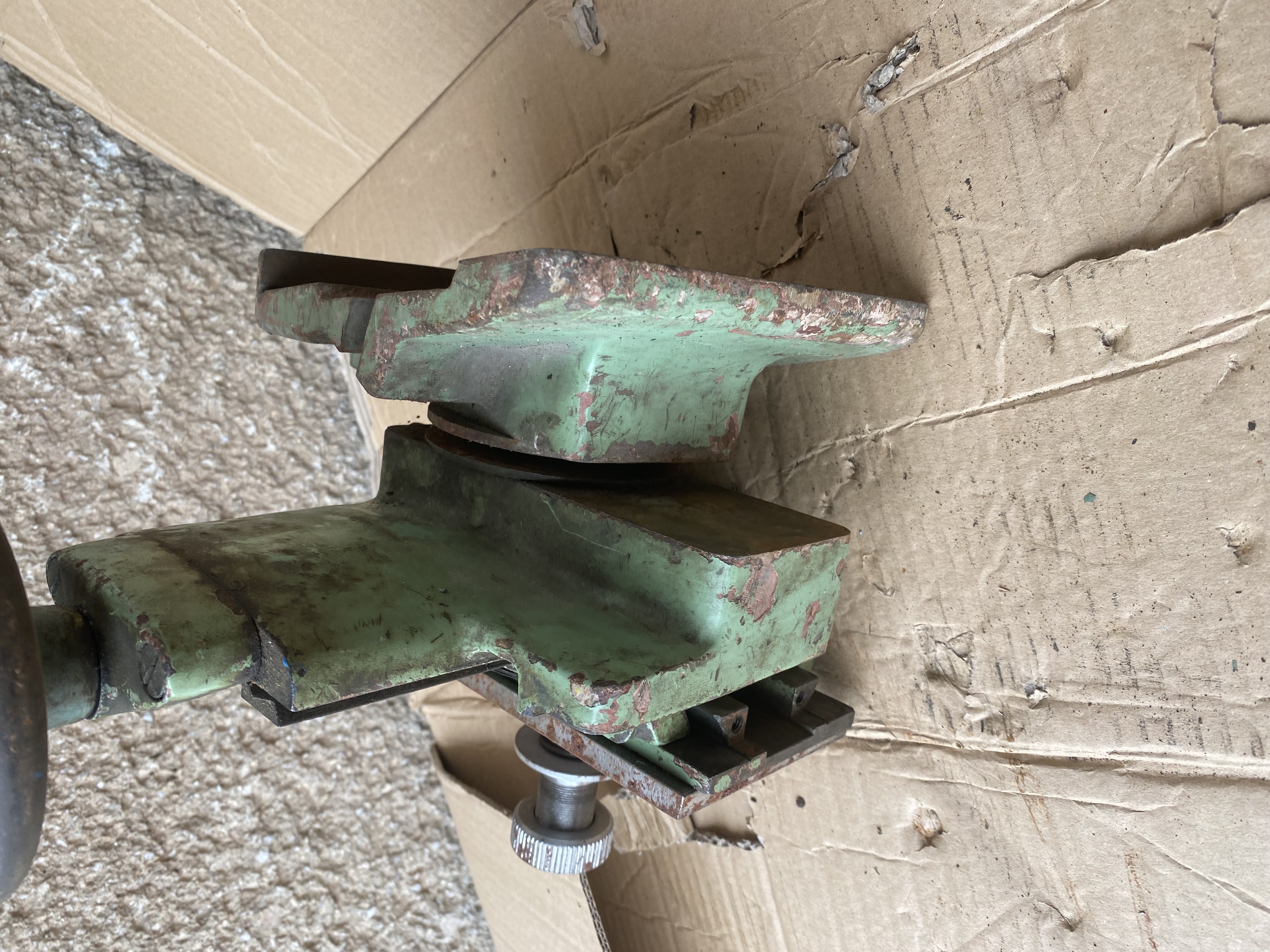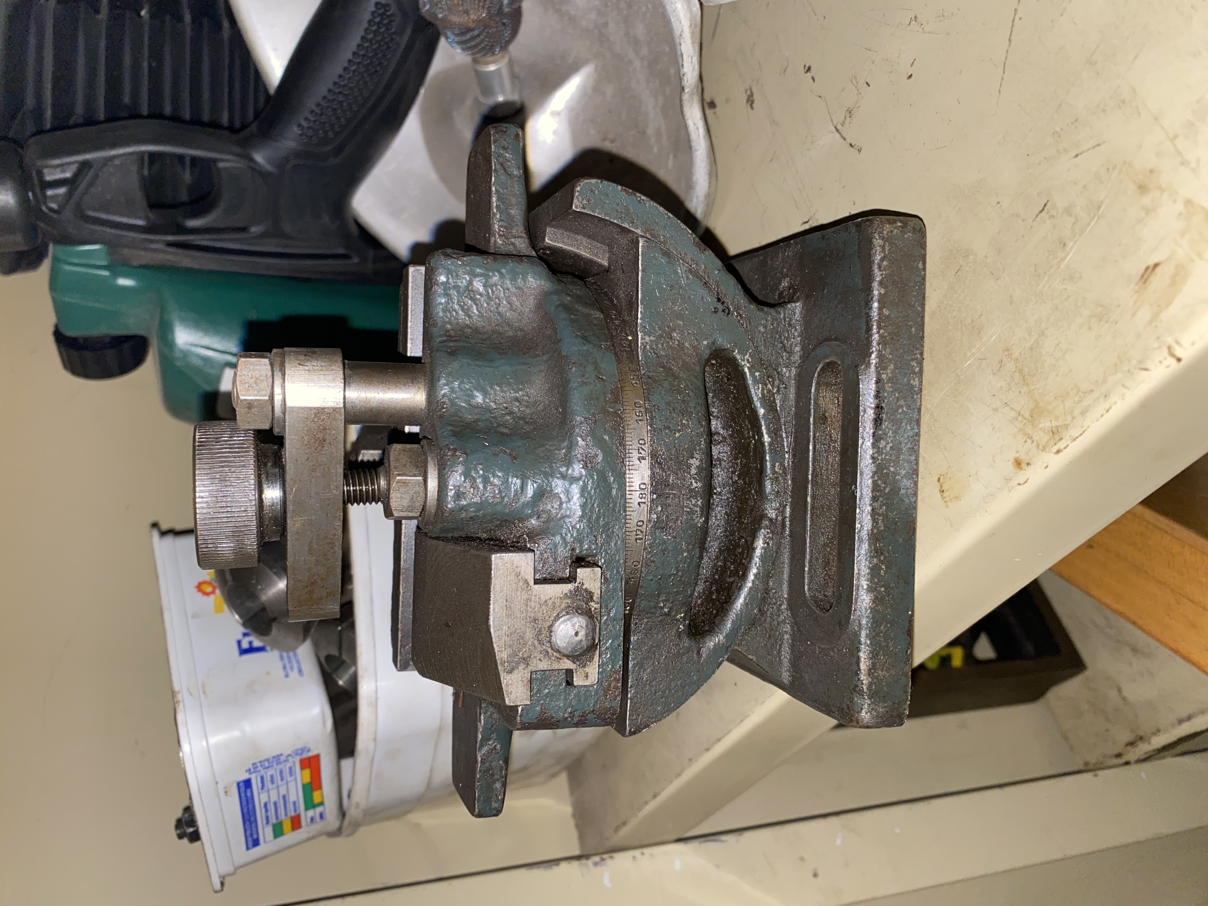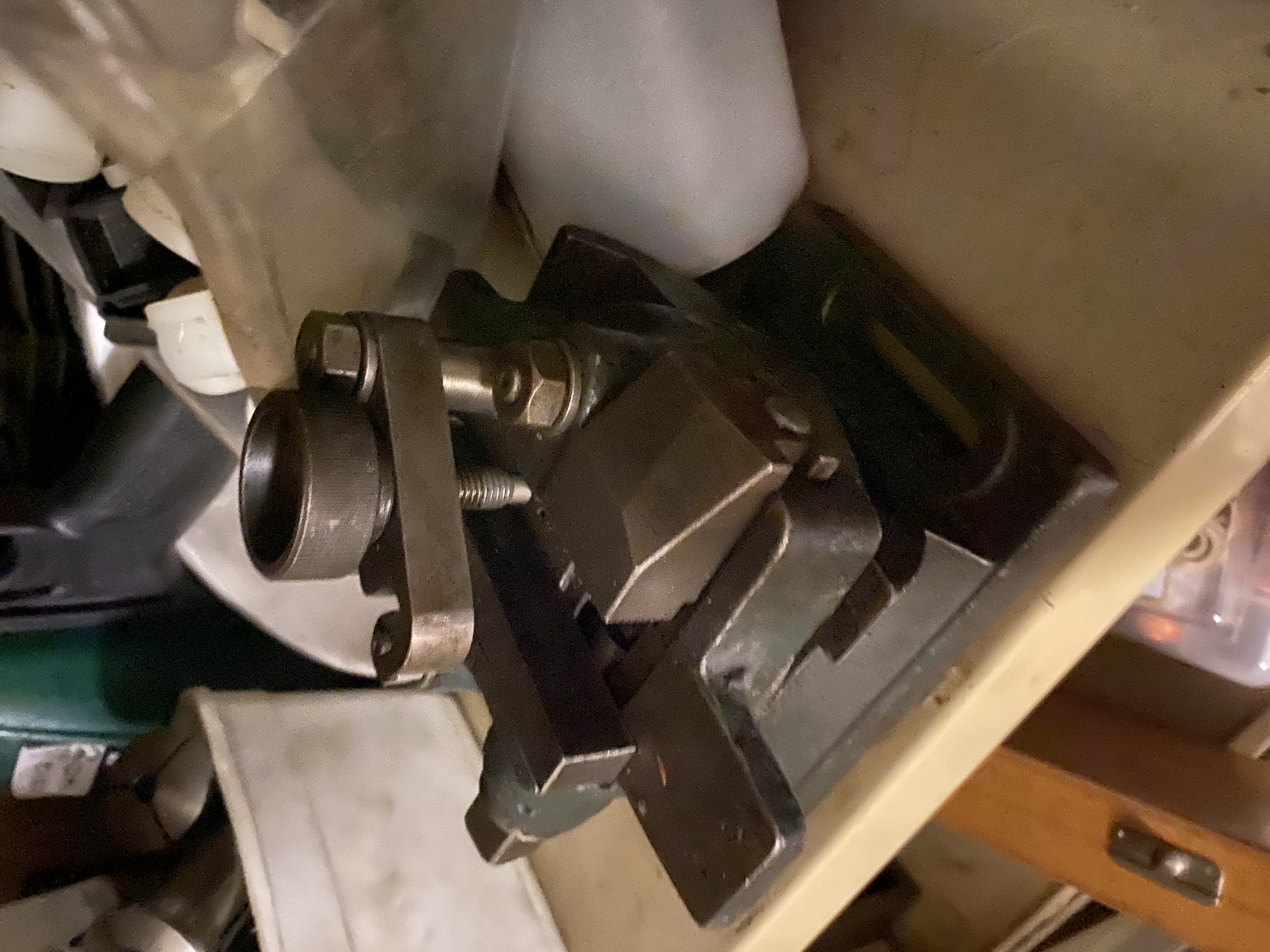 Bastl to není. Ten vrch je ofrézovanej. Origo to bude úhlový orovnávač z hrotovky - podle té spodní desky - uchycení šikmo. Navíc je tam ten pásek plechu na uchycení kožené prachovky. Kvůli bordelu z orovnávání. Podobně to má bezhrotka (křížově). Ty co mám, tak mají mikrometrický orovnávač s tělem D 50 mm. Celej má 50-60 kg...