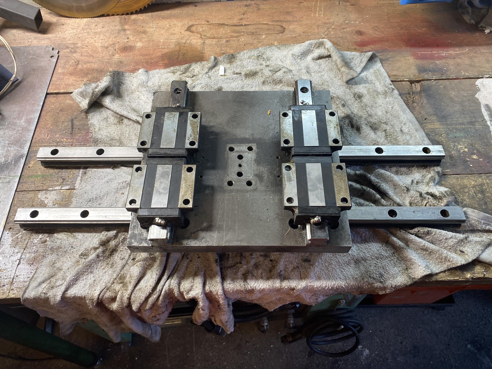 Ahoj mam tu tyto lineary. Aktualne je rozjezd cca 400x100mm. Deska ma rozmer cca 300x300x30mm. Lineary jsou 30mm. Je to dost tezky, posilat to nelze... Myslim si ze by to bylo vhodne na malicky cnc soustruh... Mit to kdysi tak to na to urcite pouziji... Cenove bych si to predstavoval za 3000kc.