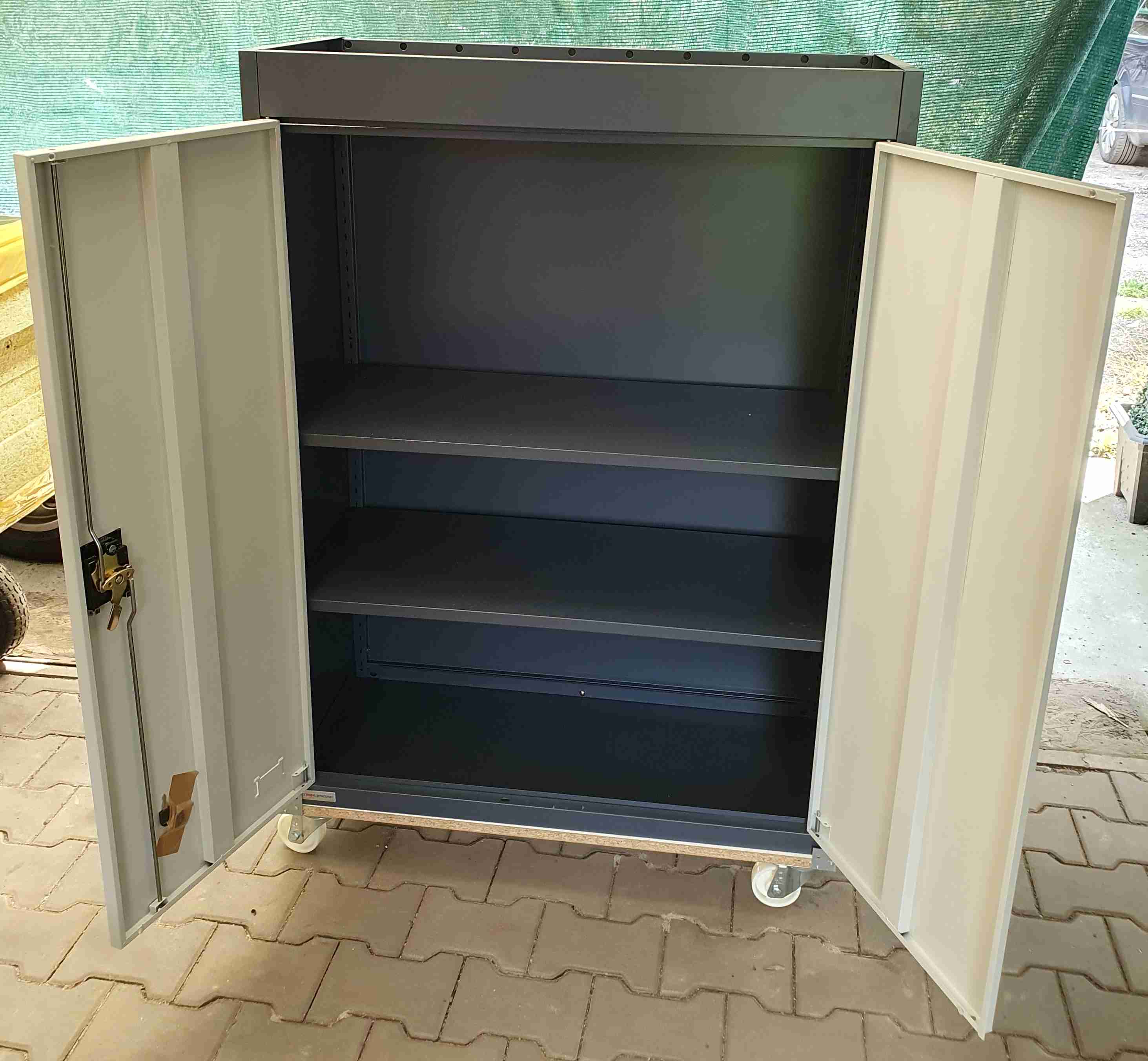 prodam za 2000kc novou, jen sestavenou plechovou srin 1200x900x400, 2x police + zamek. koupena puvodne na upravu, rozmer nakonec nevyhovuje a nemam ji kam dat.