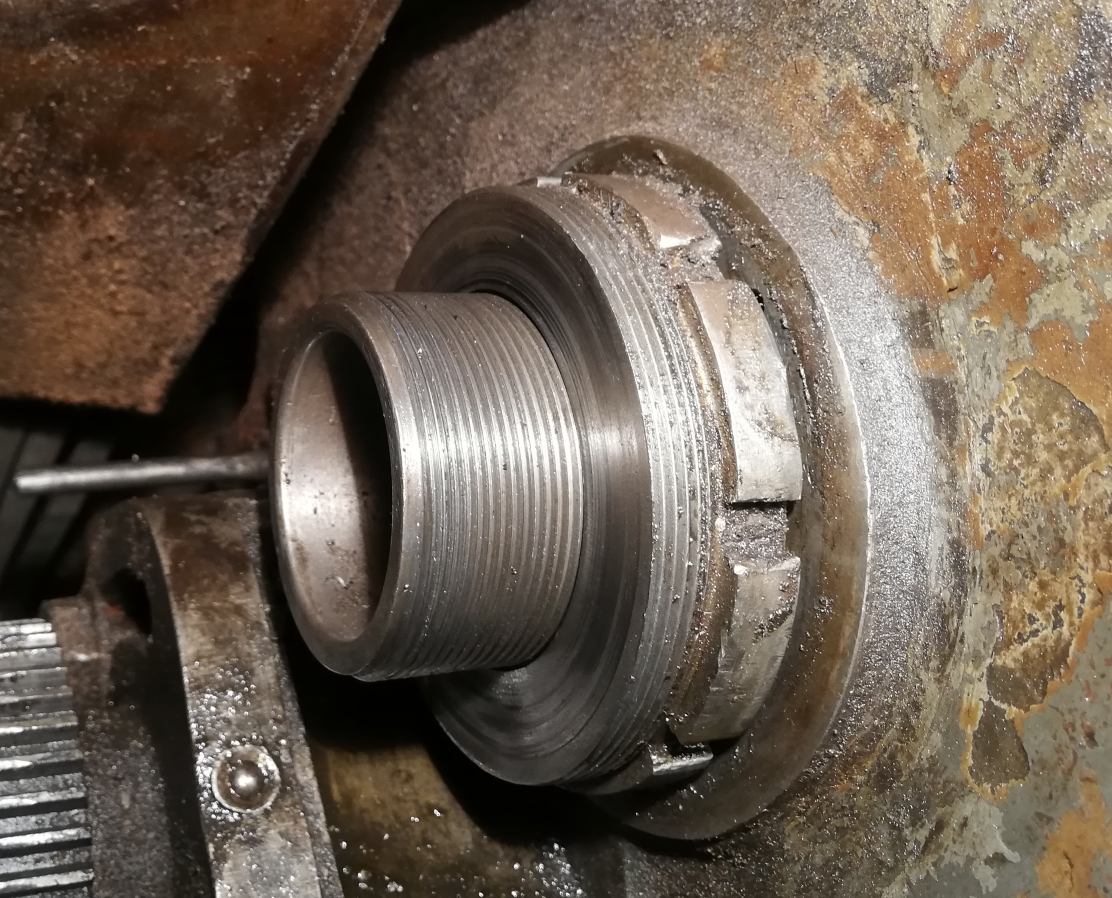 ona sa nedá vykrútiť uplne pretože tento výstupok na vretene tomu bráni a ako som ju povoľoval tak vdaka tomu sa pohlo vreteno smerom k suportu