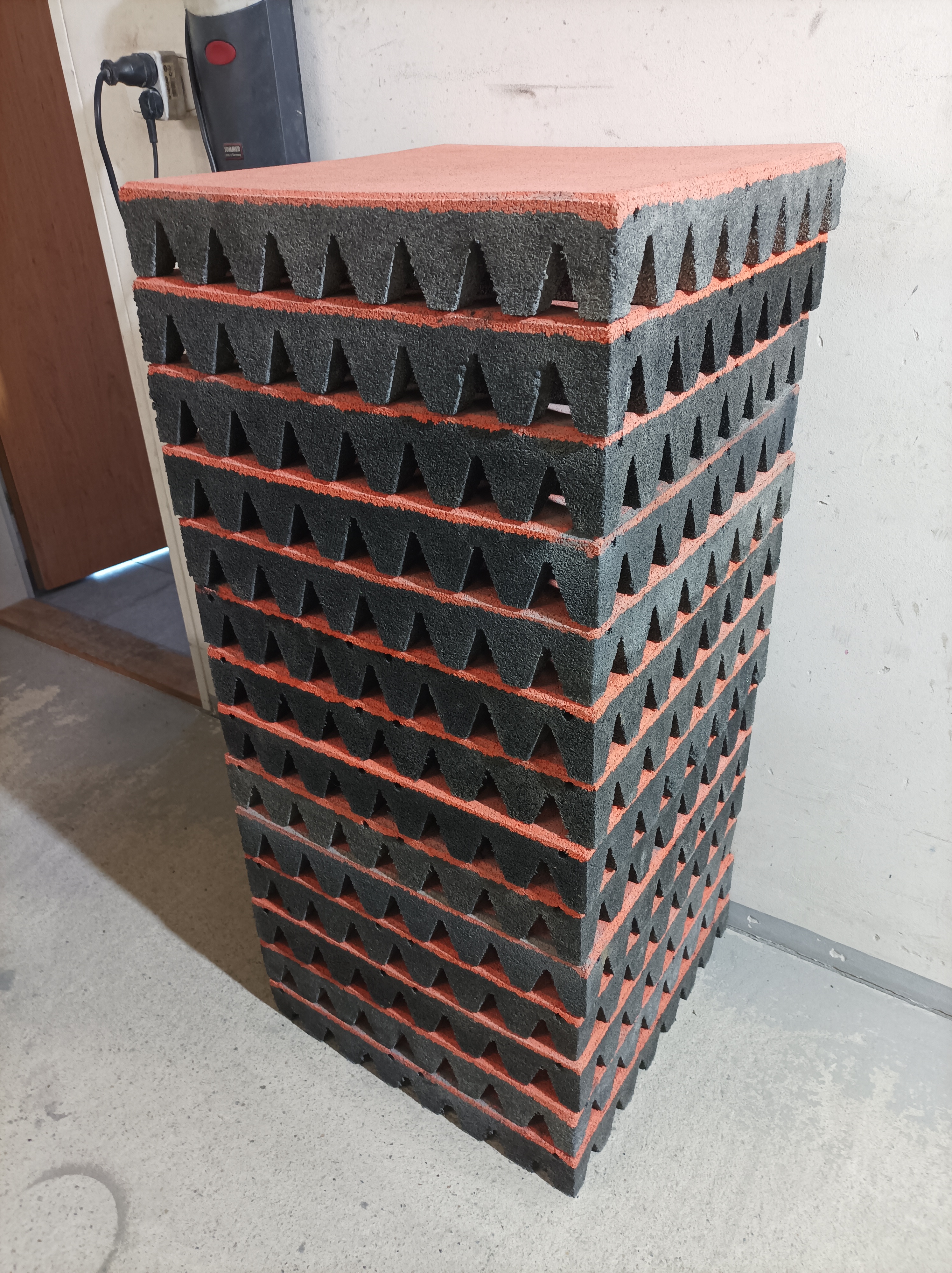 Prodám gumové kostky 50x50x7,5cm vhodné na podlahu do dílny nebo na podložení stoje.