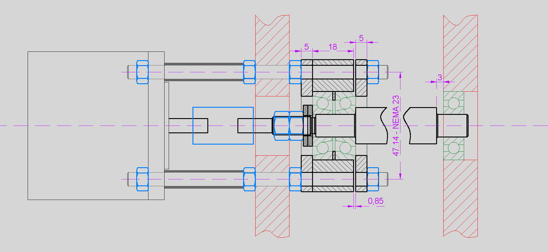 Take me nenapada, jak v teto konstrukci zajistit hiwin matici. HIR je zajistena cerviky radialne, bude dost tezke se k nim dostat. A to same se spojkou na motor.