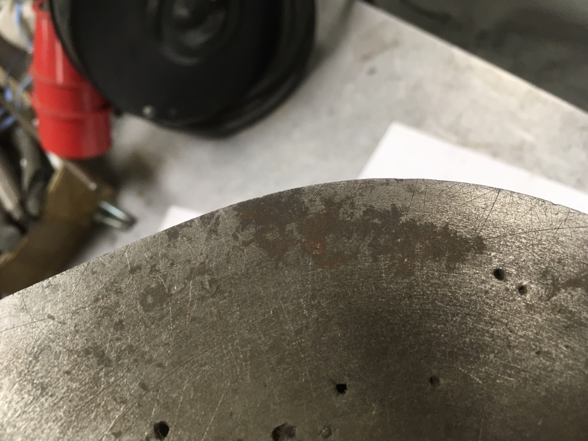 Liatinové kolesá posuvov sú hrdzavé najviac. Nieje to hlboká korózia, ale súvislá vrstva na povrchu liatiny.
