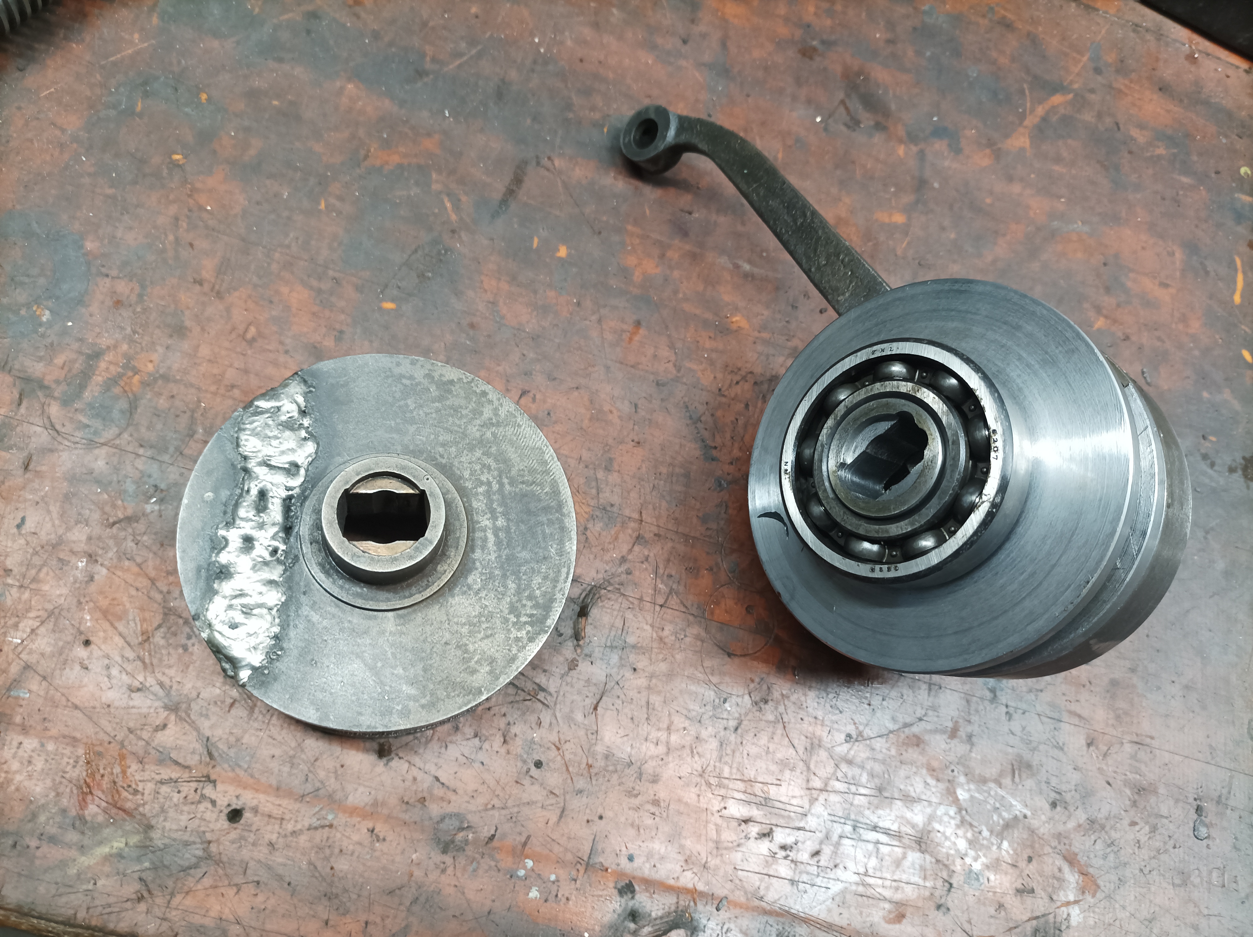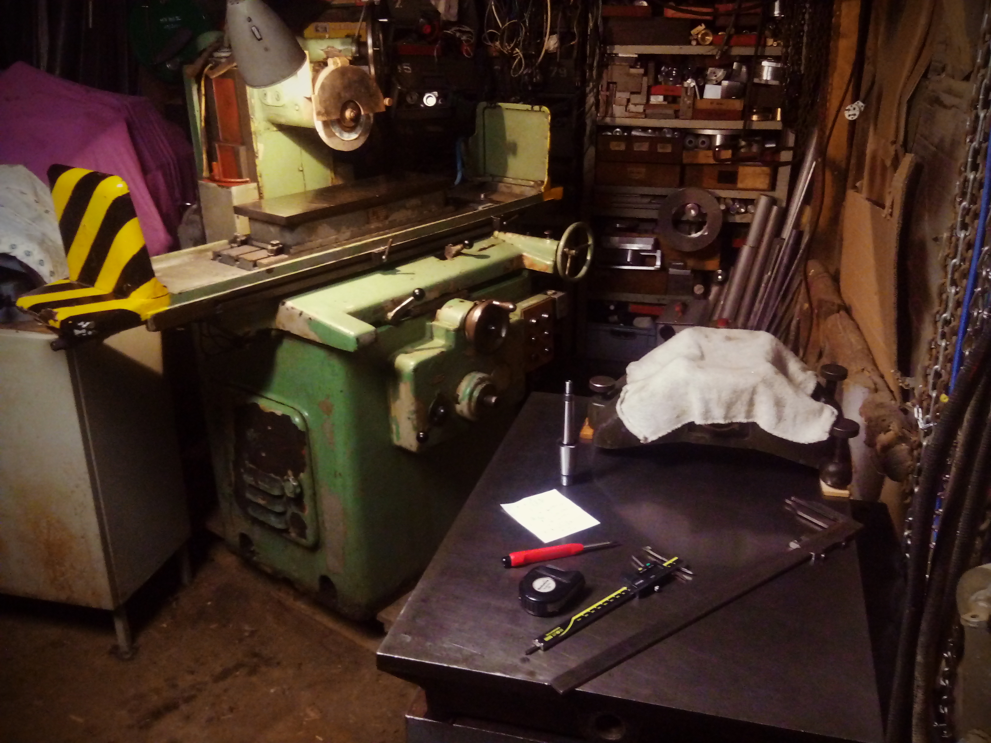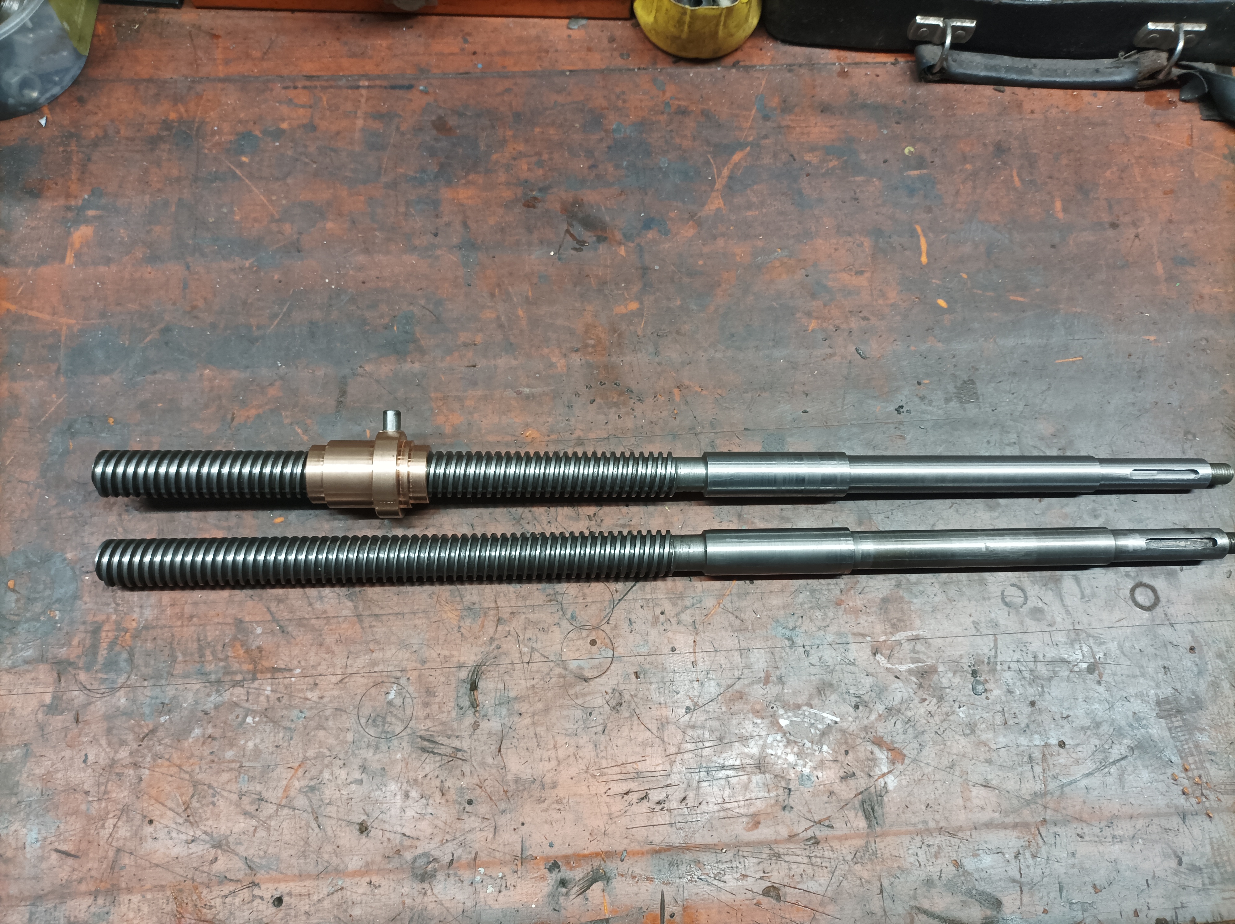 Před cca půl rokem jsem pořídil za cenu šrotu rovinnou brusku BPH200 Podhájský v polofunkčním stavu. Doma jsem zjistil, že je vřeteno totál v pr..... Na předním pouzdře zadřené a zadní pouzdro, bylo nahrazeno obyč ložisky. Proto jsem ho nechal přebrousit, přední bronzové pouzdro vyrobil nové a zadek jsem uložil na dvě kosoúhlá ložiska. Dále jsem vyrobil nový dvouchodý šroub tr24x10 s novou maticí příčného posuvu a nový segment na automatické přidávání příčného posuvu. Ten byl prasklý a na ho...... svařený. Až bude zase čas, tak se vrhnu na repas celé hydrauliky.