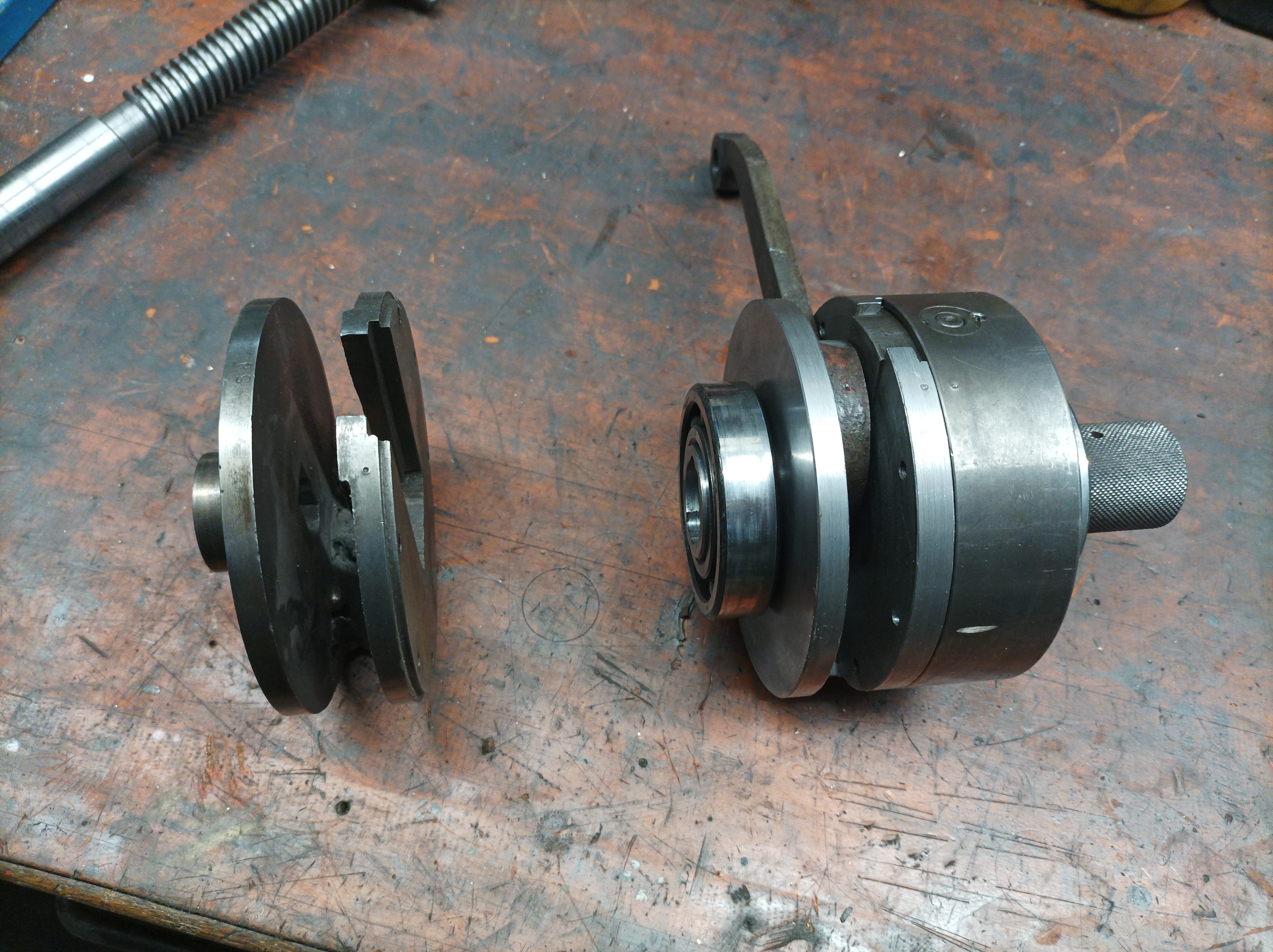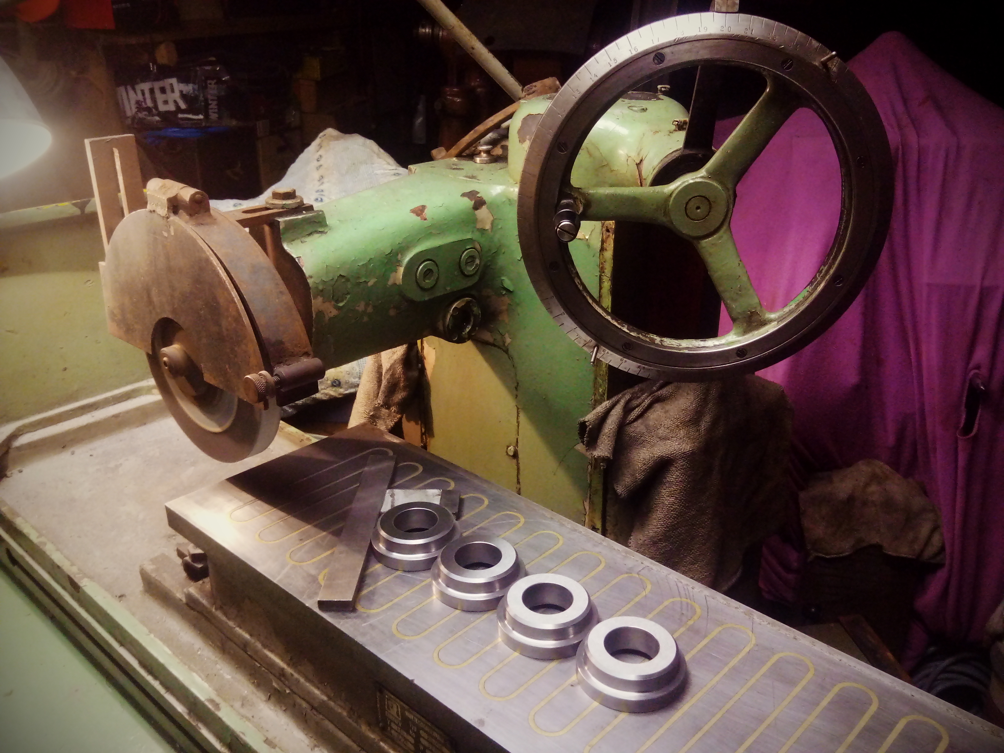Tohle je také Podhajský, kotouče jsou na natahovací trn Morse 2, bohužel k tomu byl pouze jeden, do budoucna bych chtěl vřeteno předělat na příruby z bph20, které jsou dostupnější