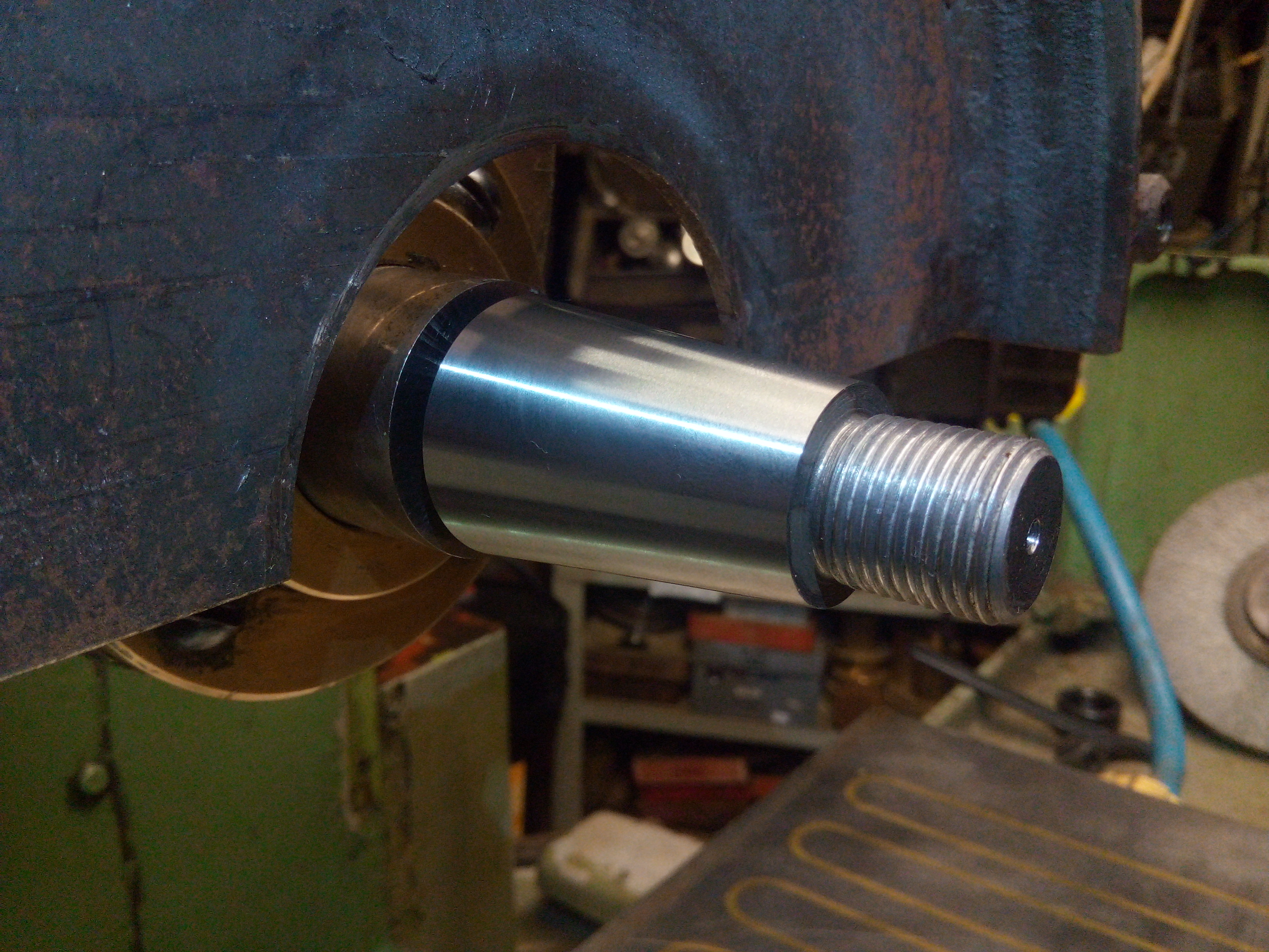 Ve předu je to na volno, axiální vůle je vymezena vzadu na ložiskách. Vřeteno jsem musel komplet přebrousit jak vpředu na pouzdro tak vzadu na ložiska plus závit na vymezení axiální vůle ložisek.