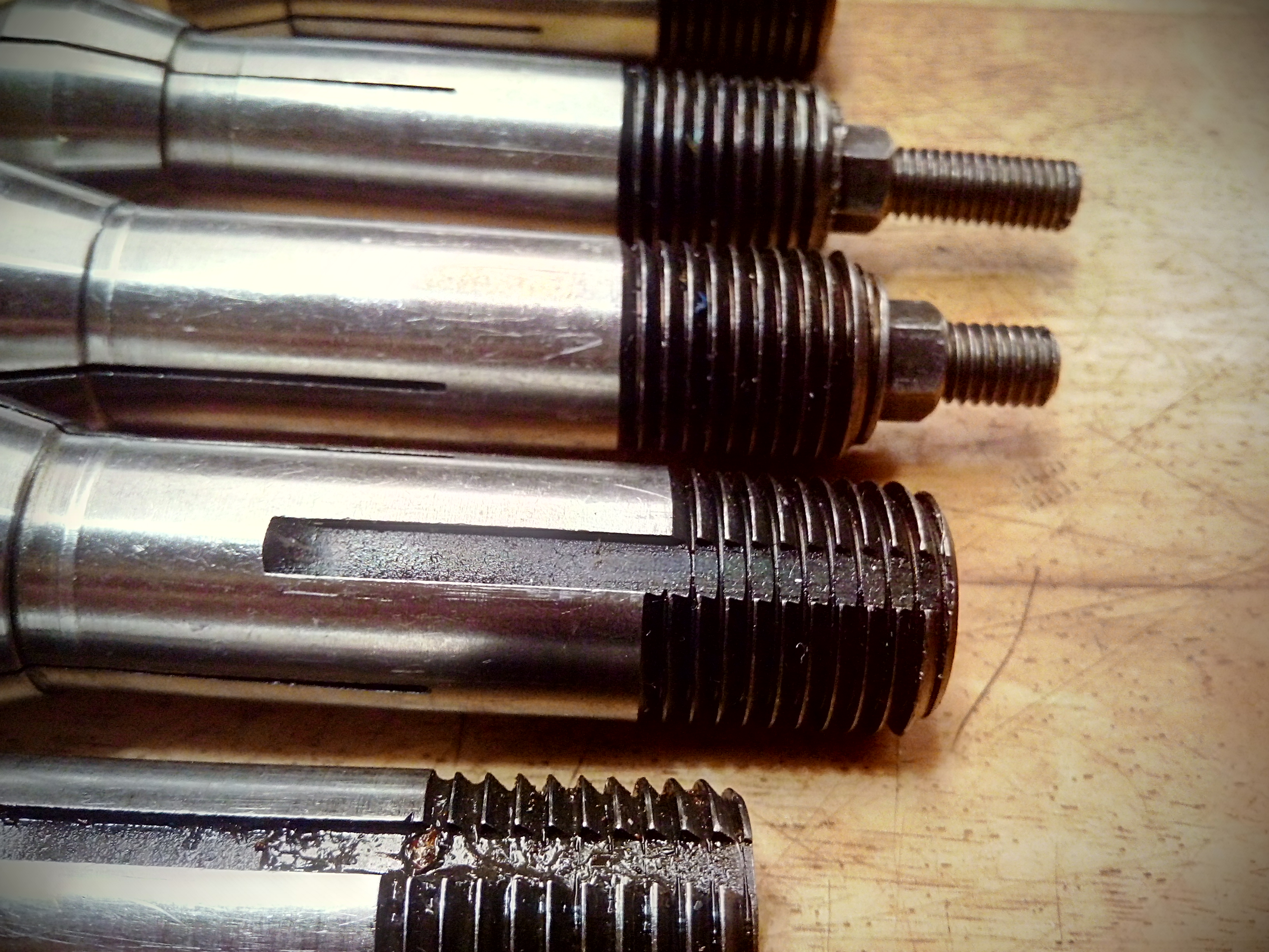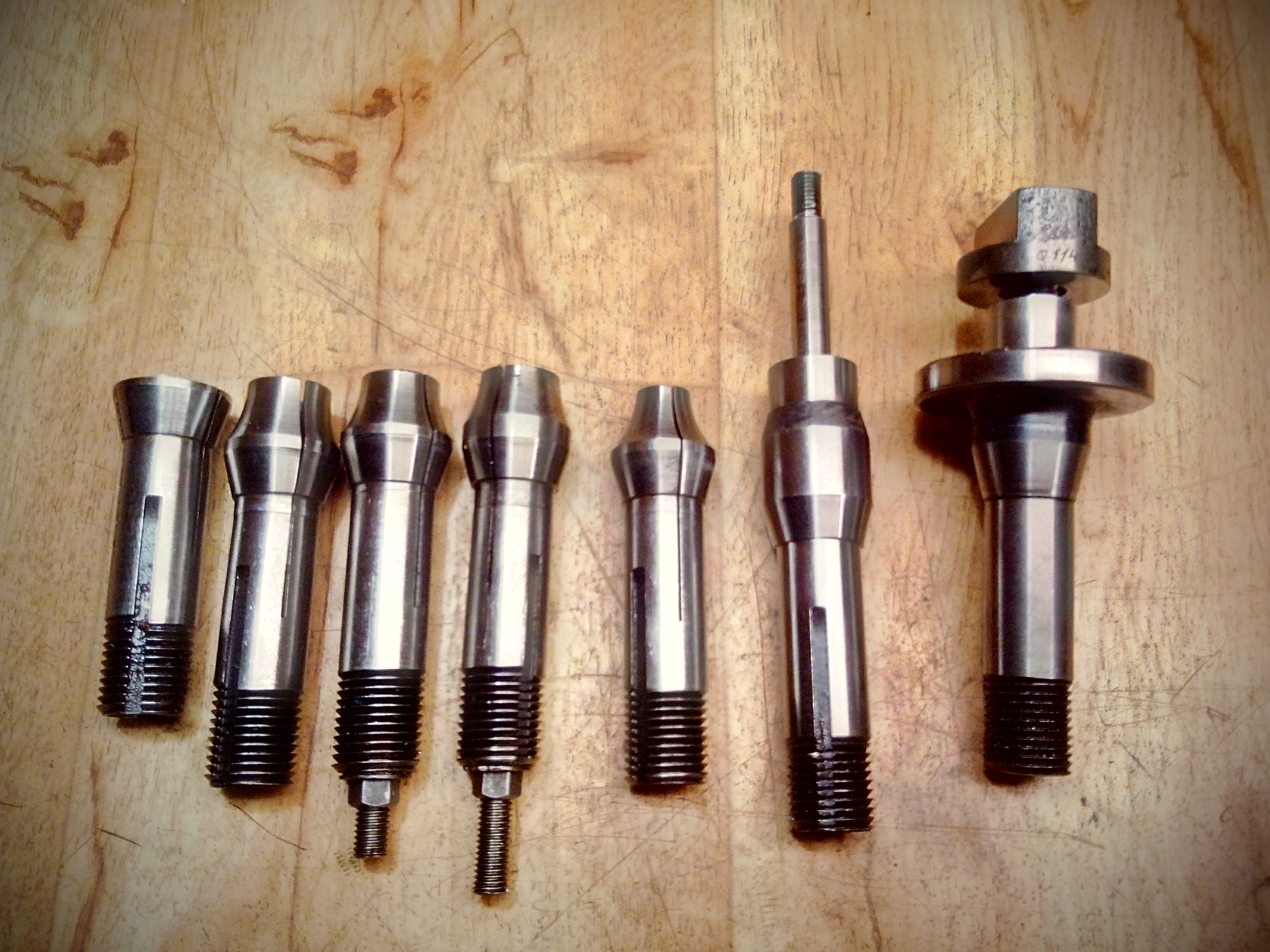 Tom Dvk píše: 23. 3. 2024, 4:18 Ahoj, objevil jsem v zásobách tyhle kleštiny, nehodí se někomu ? Pilový závit průněr 20, stoupání 2.0, průměr těla 20, délka válcové části cca 65 mm. Kleštiny 10 - 15 -15.5(2x) - 16, a dále dva nějaké trny. Frézka, bruska ?? Nevím ... nejraději bych to někomu poslal jako celek, řekněme 500,- za vše.