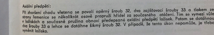 Pokud to vřeteno dlouho leželo, určitě je potřeba rozhýbat patronu, která tlačí zadní // u řemenice // ložisko a vytváří předpětí. To máš v tom návodu od Stanika.