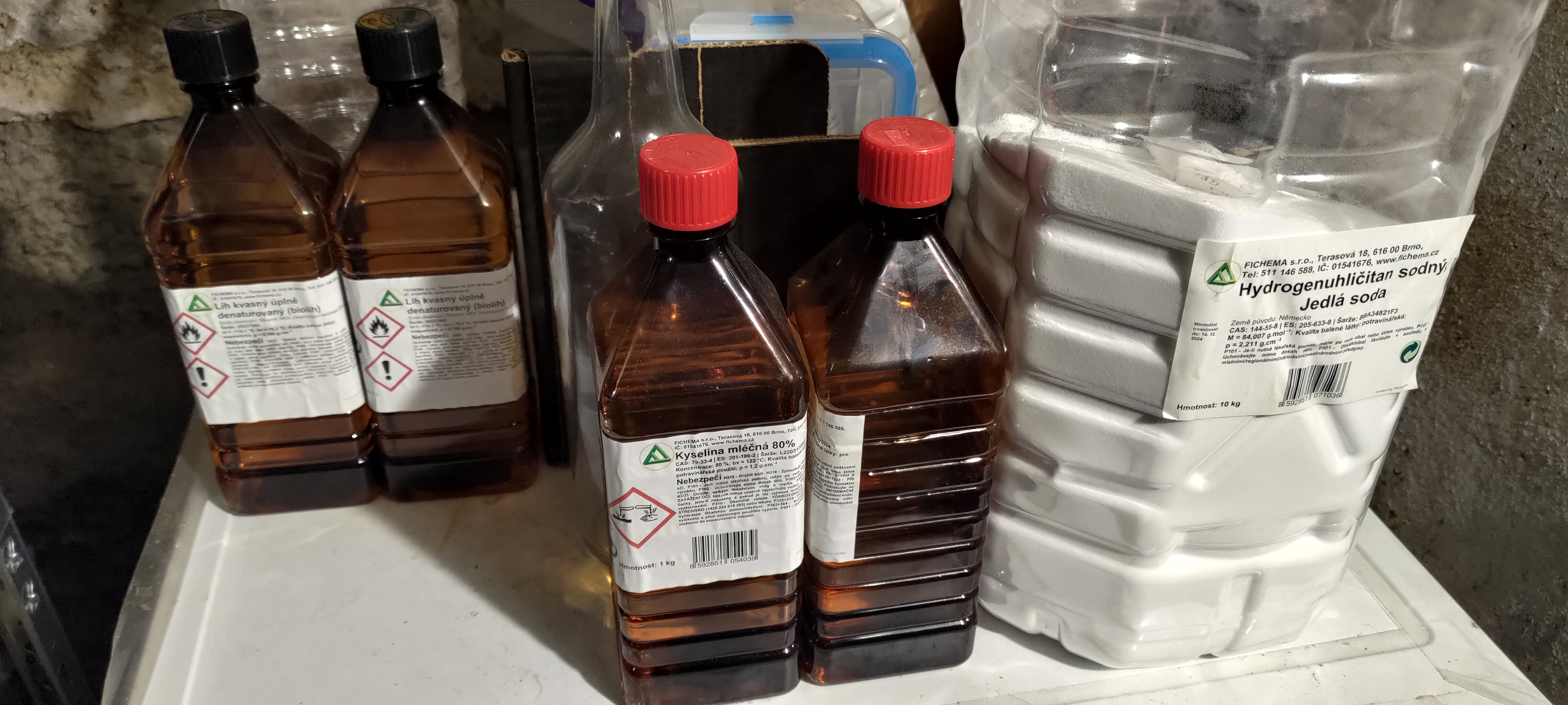 Jako nahradu za jednu lahvicku namicham 86ml vody a 50g te kyseliny mlecne (80% kys. mlecna jako na obrazku). Dela to o trochu vic nez 125ml, coz neni na skodu a koncentrace odpovida tem originalnim lahvickam.