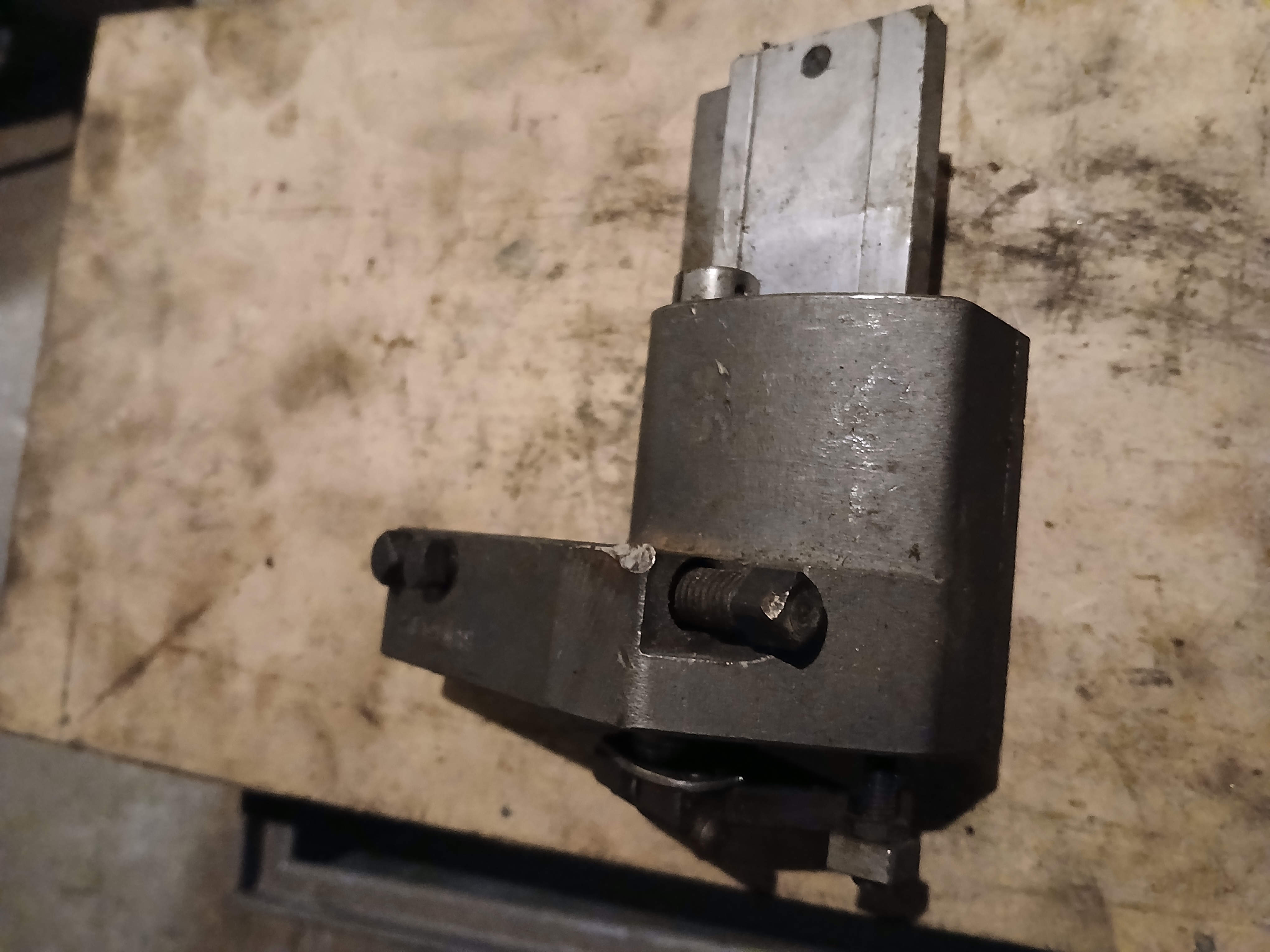 Těch držáků existovalo více velikostí. Výhoda byla, že jsi na tom držáku nastavil pomocí přímých koleček od rovného po šikmé rádlování. Nevýhoda // značná // je, že se tím držákem nedostaneš blízko k osazení // čelistem, kleštině //.