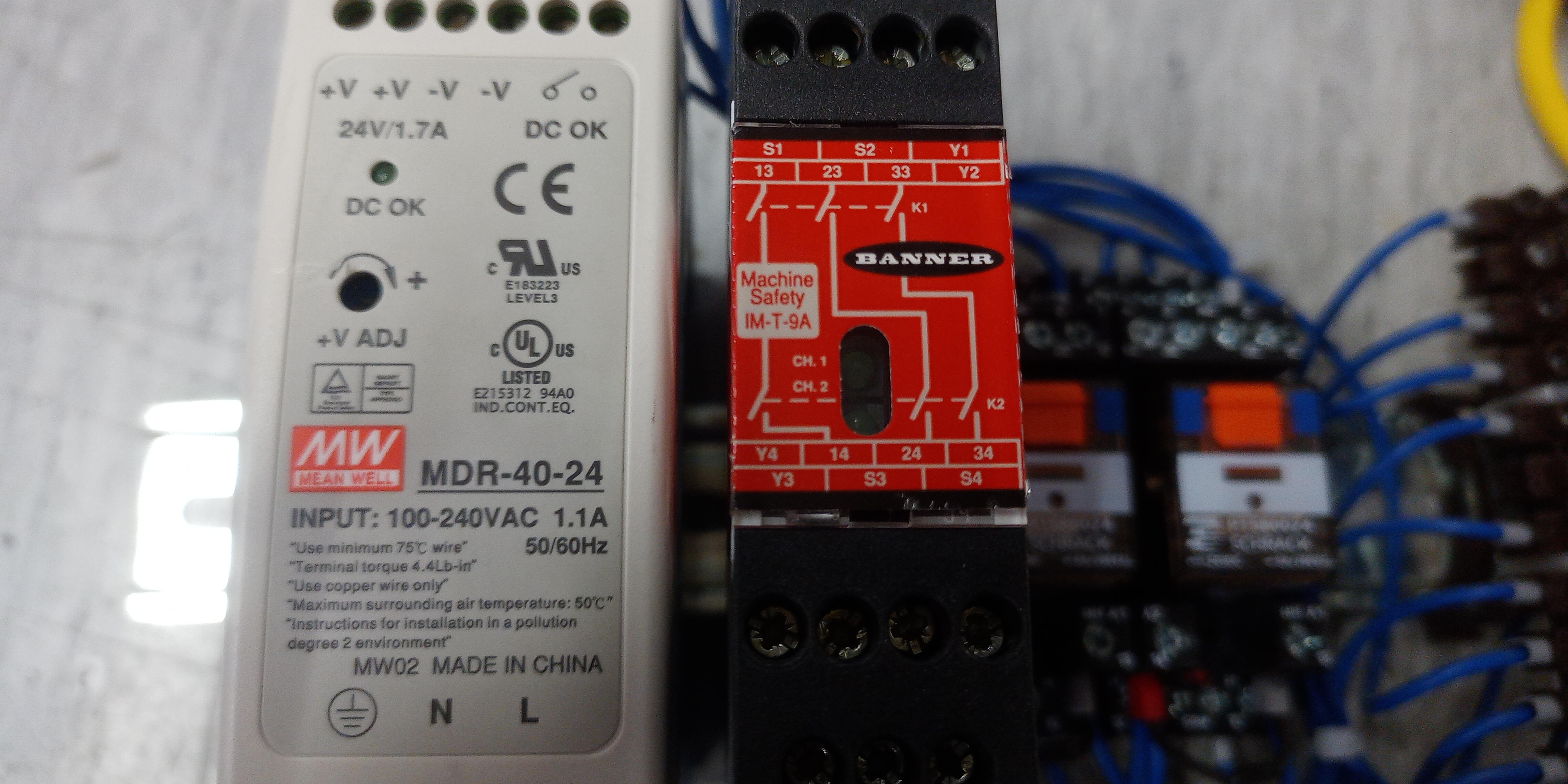 1. Buď použiješ Safety PLC (vtedy nepotrebuješ to relátko, závory pripoj priamo do PLC, ale za bezpečnosť potom zodpovedá programátor).