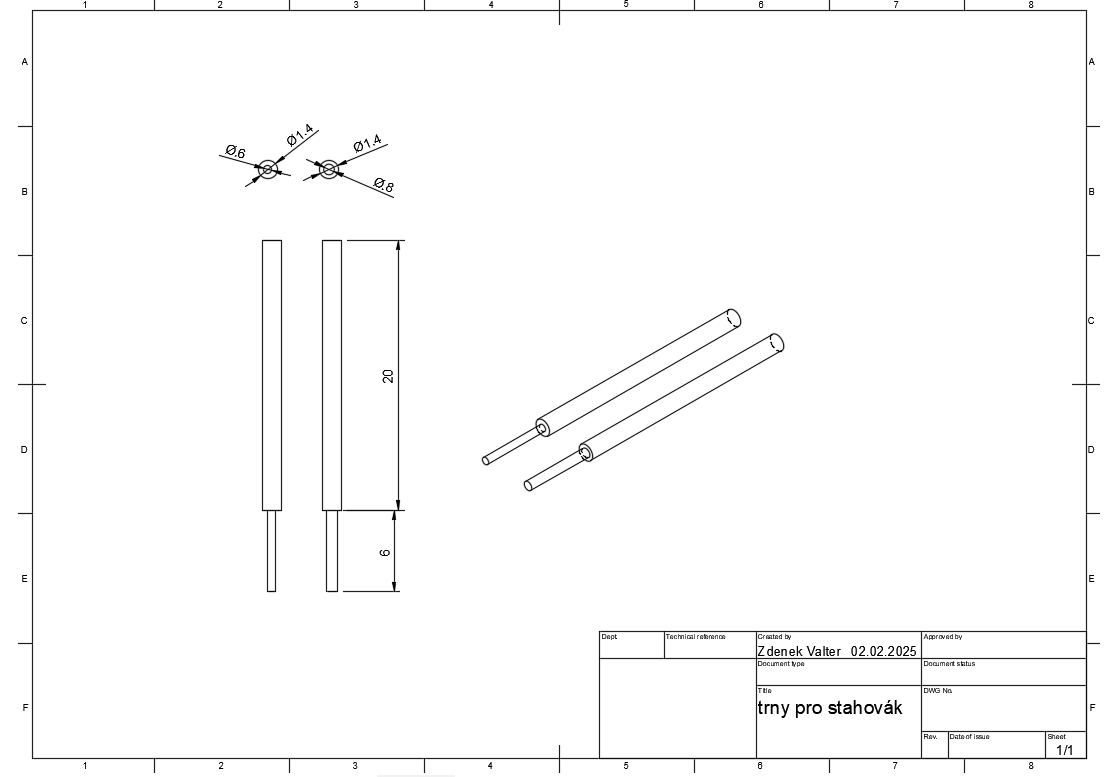 Ten priemer 1.4 mm je nešťastný. Nebolo by riešením v samotnom sťahováku zväčšiť otvor na 1.5 mm a vybrúsiť si potom všetko potrebné z dostupnejšieho materiálu fí 1.5 mm? Trebárs z kalených kolíkov, alebo ložiskových ihiel?