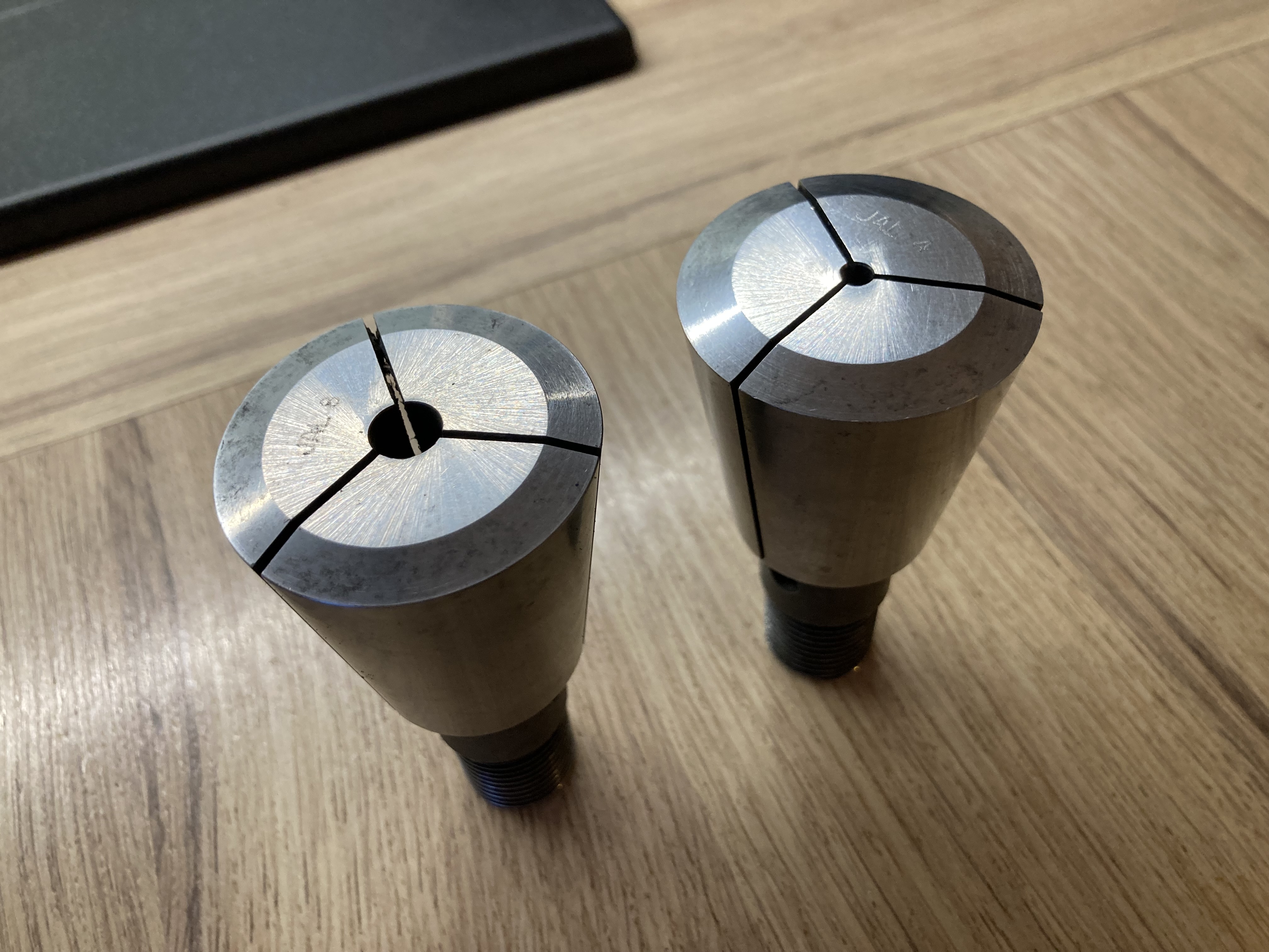 Prodám tyhle přímé kleštiny SK 40 se závitem S20x2 do Deckela. Průměr 4 a 8 mm. Pravděpodobně to není origo Deckel.