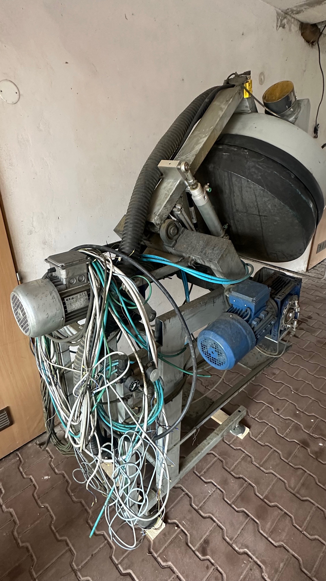 Nabídnu jednoúčelový stroj na díly či jiné využití. Jsou tam tři šnekové převodovky s motory z toho dva s brzdou. Štítek na jedné převodovce udává převod 30, zbylé štítky jsou nečitelné. Stroj je osazený nerezovým bubnem o průměru cca 700mm.