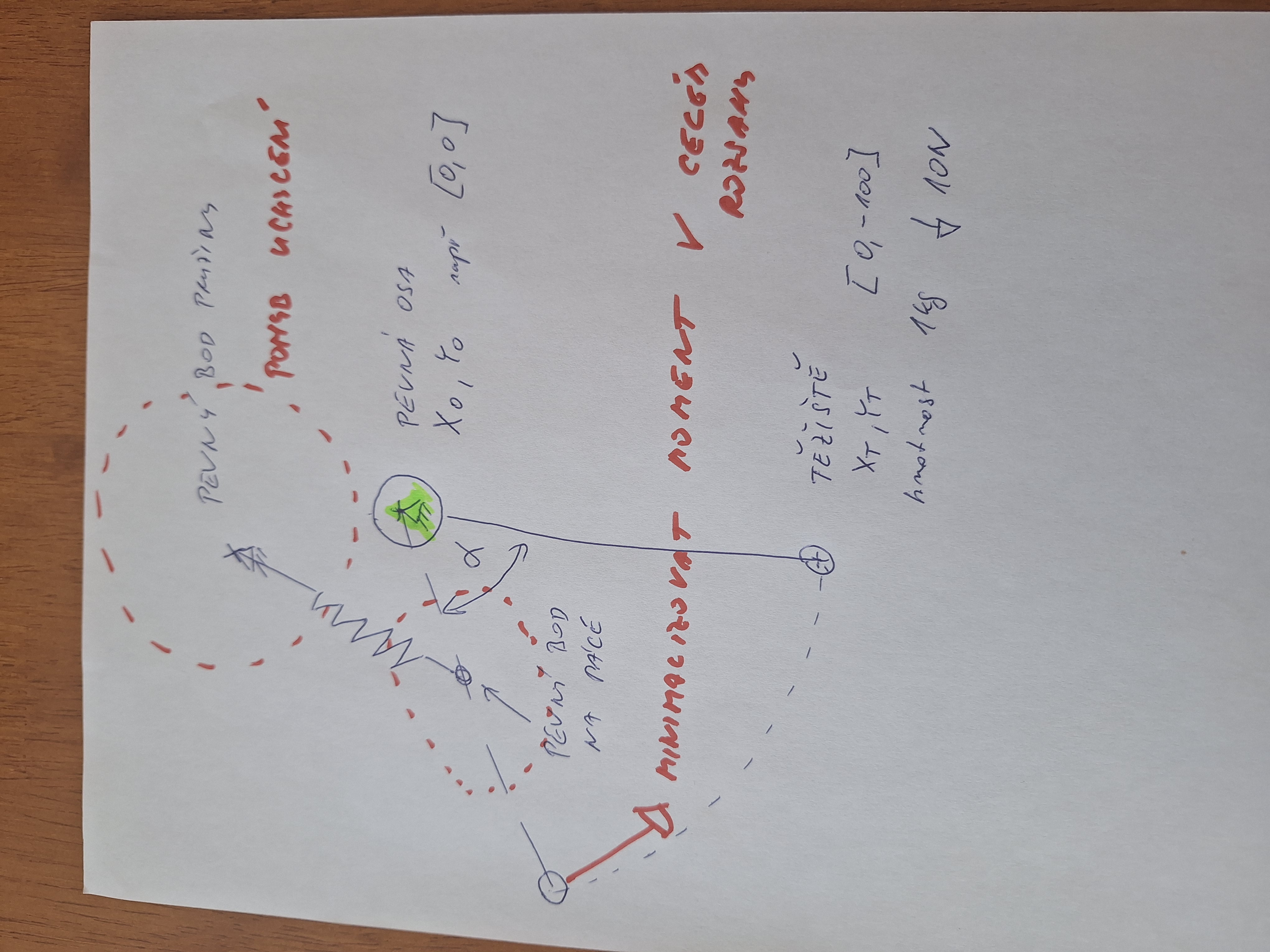 mám páku s bodem otáčení např X=0,Y=0 , těžiště je v bodě 0,-100 a hmotnost je např 1kg, tedy páka bude svisle dolu, otáčivý moment 0 a působící síla 10N směrem svisle dolu