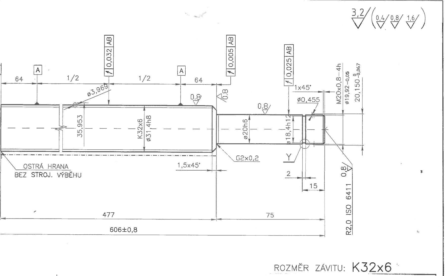 Tolerance broušených rozměrů a, b, c - 0,00; + 0,05 mm