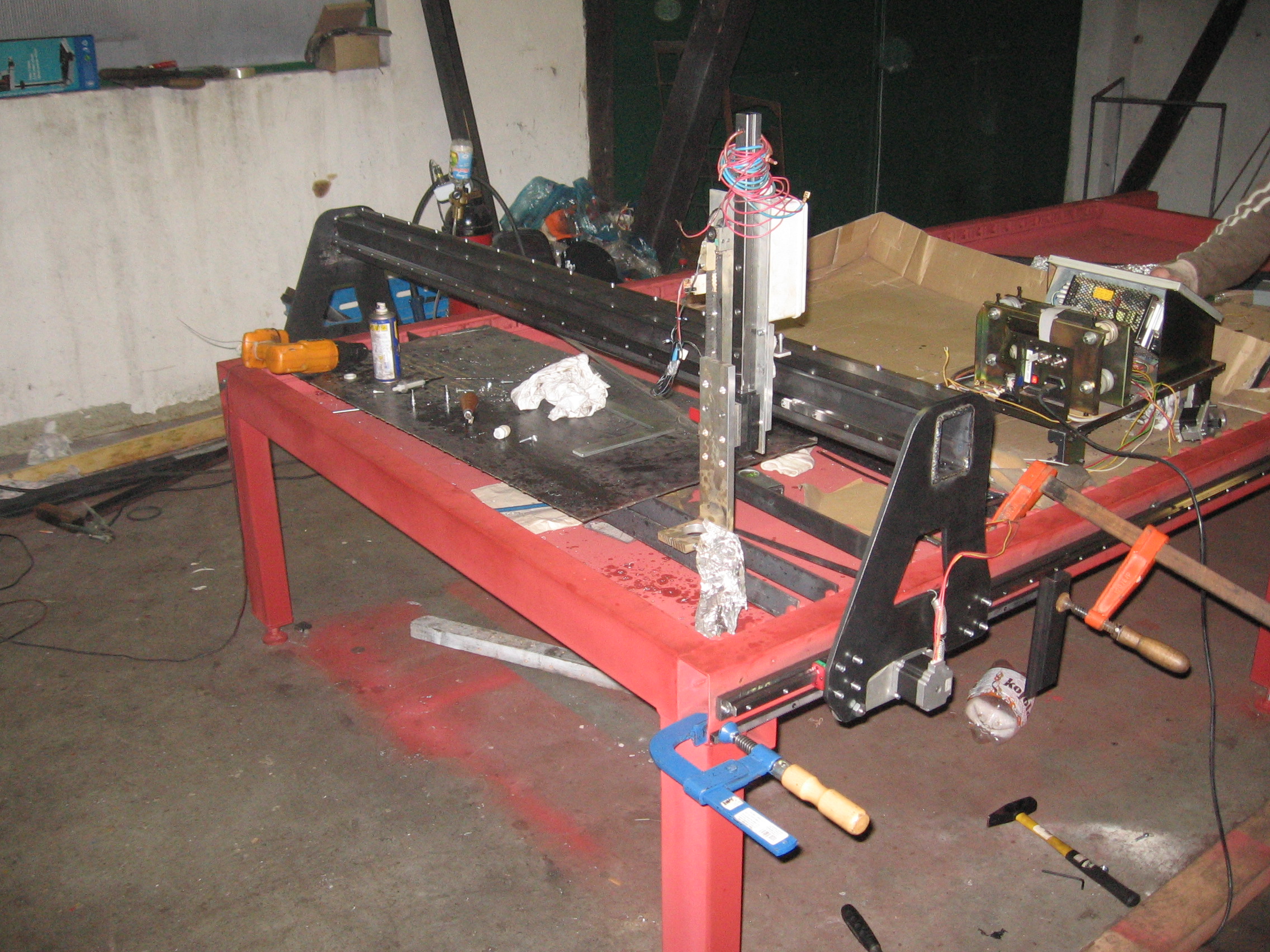 Ahoj..chtel bych se zeptat tech zkusenejsich jestli je roztec voziku 25mm na 1,5 m rameni dostatecna, tak aby se portal nekrizil. Bocnici jsem chtel vyrobit z 5 mm plechu s vyztuhama. Protoze je uz stul svareny (to modry) chtel bych se zeptat zda nema nekdo napad jak usadit vedeni k jeklu (100x60x3)..uz jsem to tady videl nekolikrat ale vzhledem k rozmerum 3 x 2 m neni frezovani drazky dost dobre realizovatalny ale aspon nevim jak.