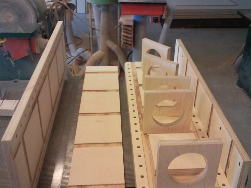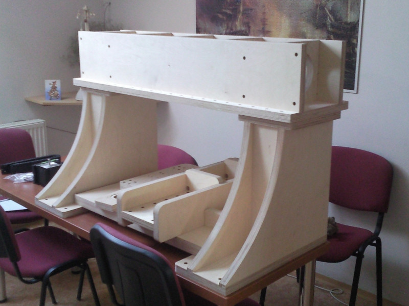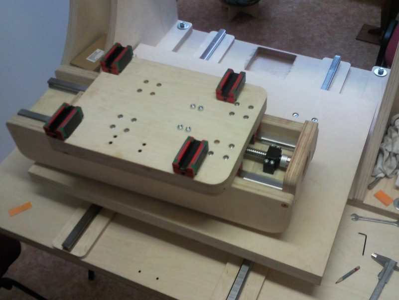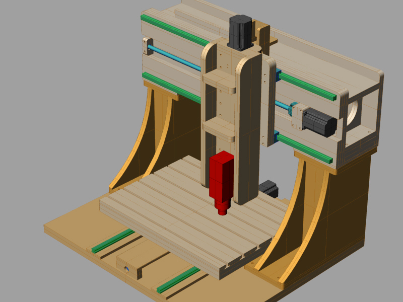 Nyní nastala ta správná chvíle na stavbu dalšího udělátka a tak jsem se kolem 15.července pustil do stavby "dřeváčka" z finské březové překližky (800x600x370). Rozpočet jsem si stanovil na cca 100.000Kč, ale asi jej lehce překročím - nechci šetřit na vřetenu. Všechny osy budou postaveny na "25" lineárech a "20" kuličkových šroubech. Pohony 4,2Nm krokové motory, předpokládaná max.rychlost 5.000mm/min, obrábění 3.600mm/min. Z 99% se na něm bude opracovávat blokový materiál (tzv. umělé dřevo) o měrné hmotnosti 0,7kg/dm3.