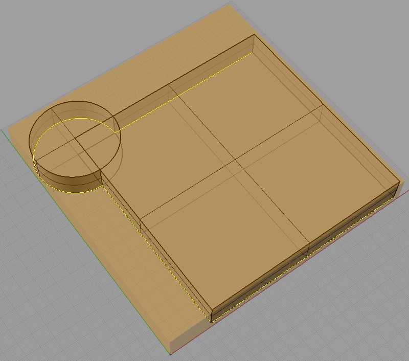 ted to delam tak, ze pro tento pripad nakreslim Ucko takze me to zajede mimo material a objede me to ty tri strany a potom tu druhou stranu napodruhe.. a obrabeni v 3D to je kapitola sama pro sebe.. rozbiju povrch jednou kapsou a uz to rhino hlasi jako nespojitou plochu a konec.. takze kapsu vyhodit udelat to a pak dokapsovat, nechapu ze ten software to neumi zalepit sam..