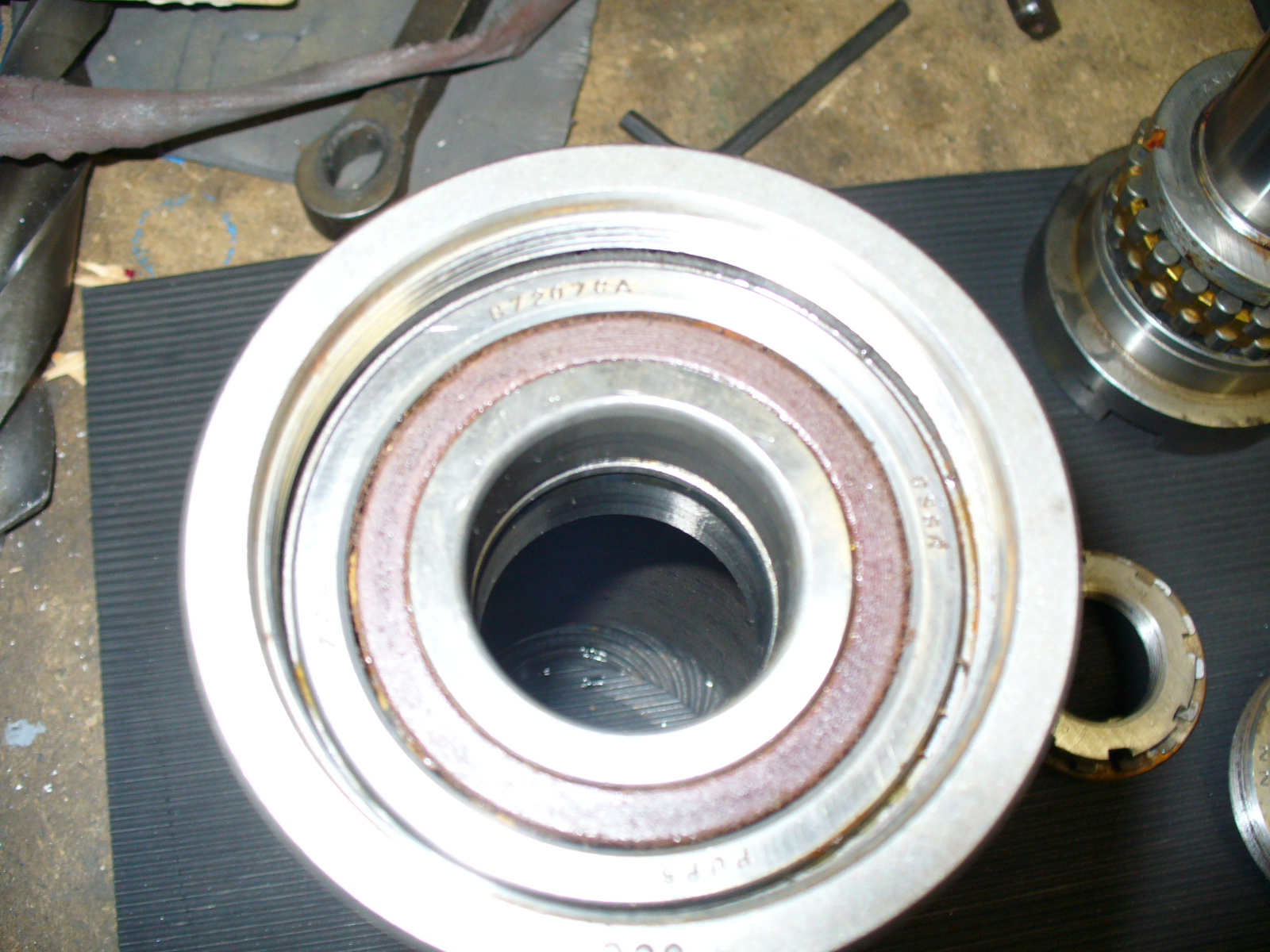 Na předním konci nebylo ložisko,ale jenom válečky v kleci a vnitřní kruh bylo samotné vřeteno a vnější zase celá ta pinola ta kterou objímám rukou.