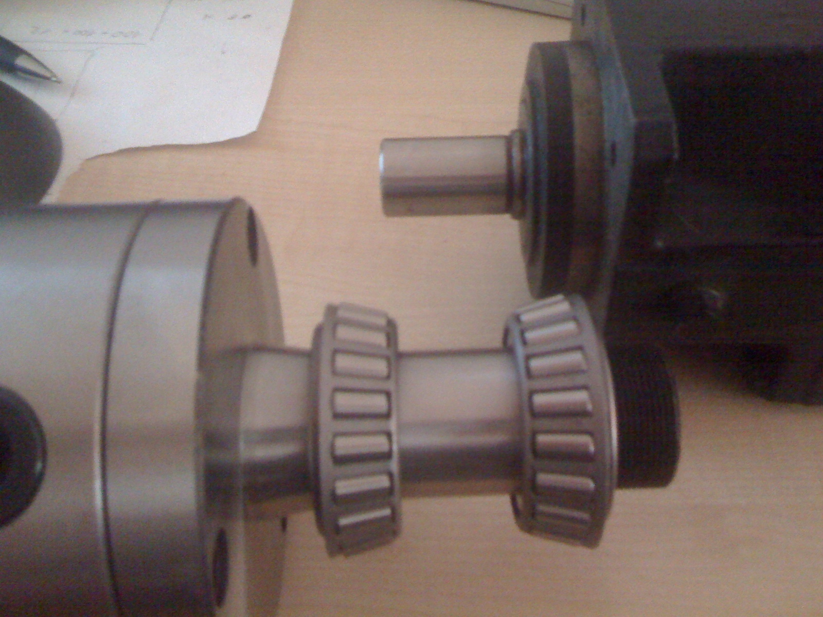 Potřeboval bych trochu poradit se 4-rotační osou. Nyní už mám doma všechny komponenty a už jen je sesadit, ale mám jediný problém, a to jak vyřešit spojení převodovky s přírubou sklíčidla. Jako nejjednodušší mi přišlo dát to vedle sebe viz. foto a nahánět to ozubeným řemenem, řemenice na přírubě sklíčidla by byla mezi ložisky. A zde je můj problém, šíře řemenice může být pouze 20mm, případně kdybych odsoustružil (pokud to vůbec pujde) ten konus co je na přírubě před prvním ložiskem, tak bych se dostal na šířku řemenice asi 30mm. Jaký je váš názor na pohon řemenem? vím že se to hodně používá, ale zde se bojím té malé šířky, bojím se aby to při obrábění nějak nepružilo, kdybych tam mohl dát šířku alespon 50mm tak to řešit nebudu , ale těch 20/30mm se mi zdá málo, možná se pletu a bude to dobrý. řenenice by měla pr. cca60-70mm, oboje stejné (1:1) a byly by co nejblíže u sebe, takže volný řemen ve vzduchu by byl asi 70-80mm .