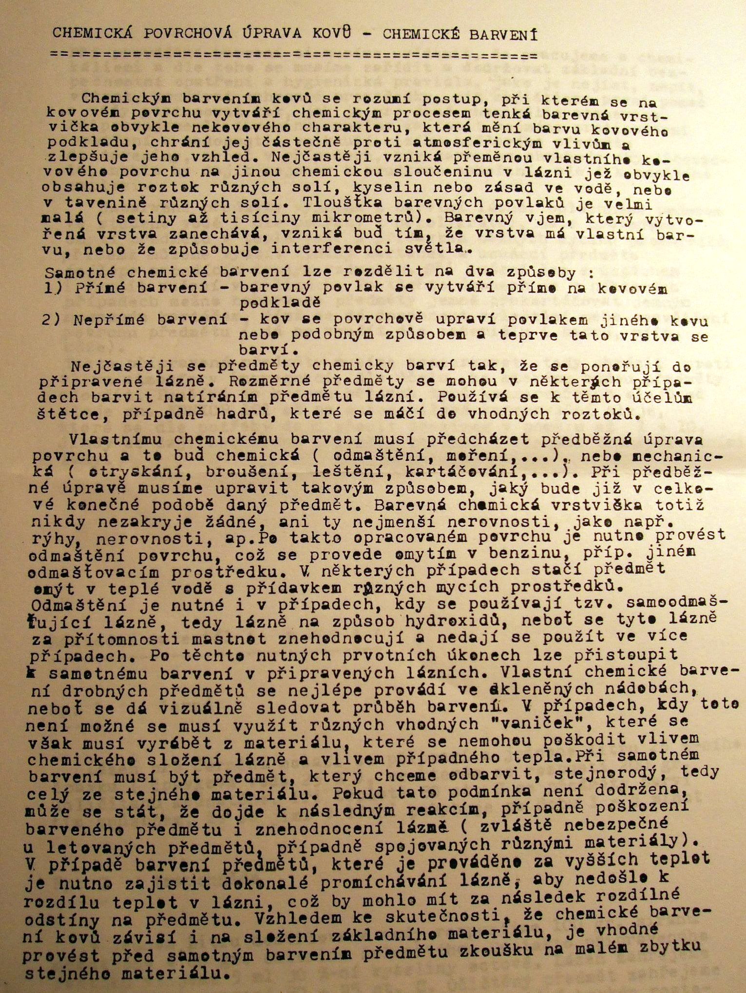 jj zlatnickou dobře nám.tohle tam ale určitě nemají. z chemek dokažu sehnat cokoliv...teměř.. :) blackbul se prodava sada na aukru za 500 kč. skusím to přes týden a uvidím jak to dopadne. ptal jsem se spíš proto jestli to vubec skoušet. chci načernit jenom par čepu . same drobnosti nic velkeho.