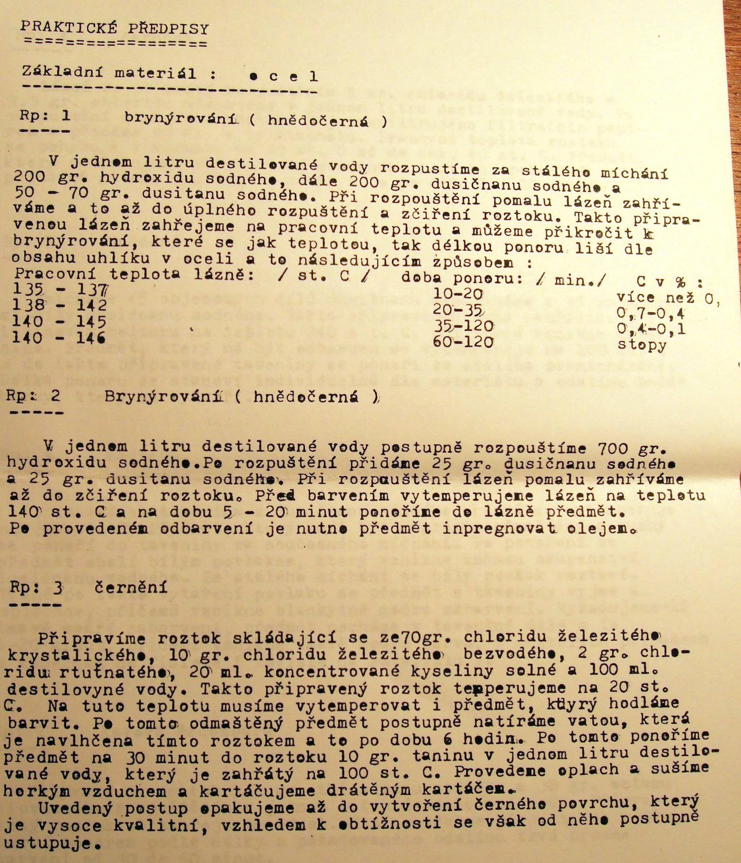 Otázka byla nejspíš směřována jestli to funguje - ano! Ale, jak je tam psáno tak se musí moření opakovat. V mém prápadě byl vásledek velmi uspokojivý po důkladném oplachovaní mezi lázněmi a navíc vycházelo lépe s vysoušením (fénem). Výsledkem byl povrch vzhledově načerněn, to ano, ale ve vlhku korodoval :-( takže použití spíš na věci které jsou naolejované.