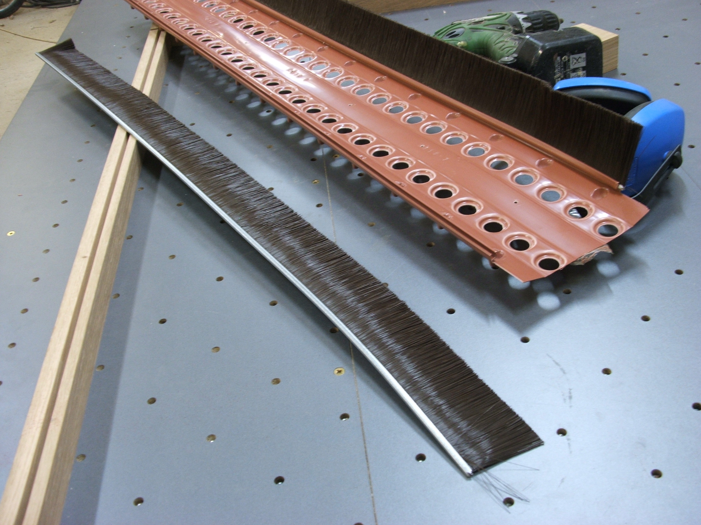 testone píše:Zajdi do stavebnin, jako příslušenství ke střešním taškám se prodává těsnění (odvětrání) pod hřebenáče, je to plastový díl ve tvaru širokého U, po stranách to má v drážce nasazený kartáč o tl. cca 5 mm, délka chlupů asi 60 mm, chlupy jsou zalisované do lišty z pozinkovaného plechu, rozebráním získáš 2 kartáče 5x60x1000 mm, to vše za cca 100-200 Kč.