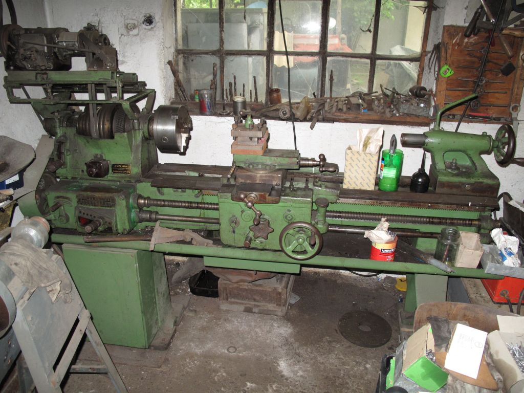 Prosím o pomoc při identifikaci tohoto soustruhu Volman. Je k němu přidaná převodovka z Volhy 21.