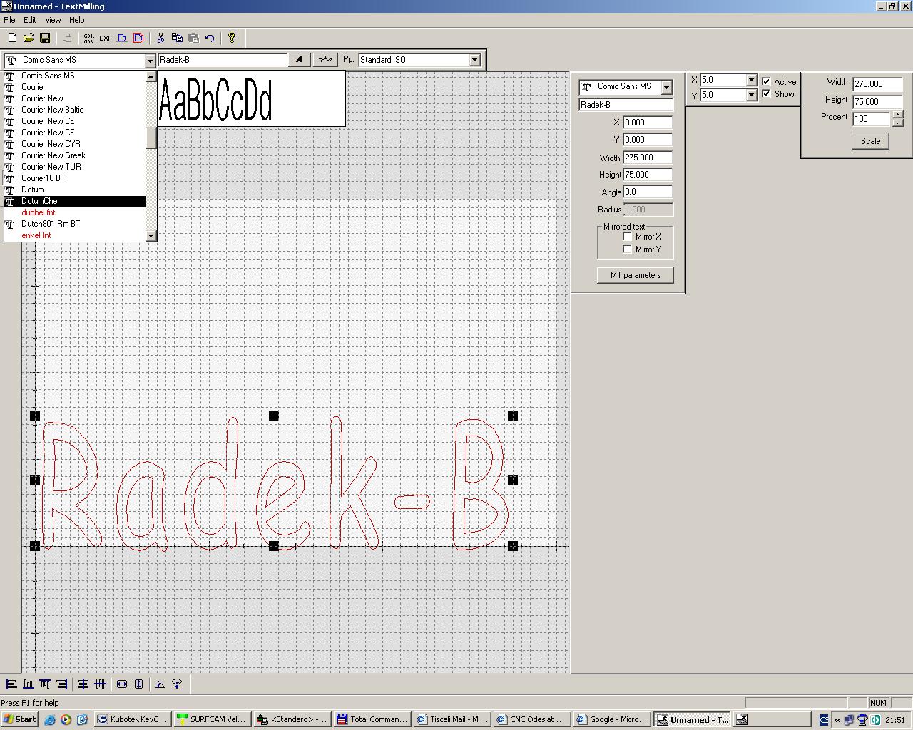 Pokud chce clovek pouze vystup nejakeho napisu v DXF a nasledne na to pusti nejaky CAD kde si udela G-kod pro stroj, tak se da pekne vyuzit demo programu TextMiling(je tam povolen zapis souboru do DXF.