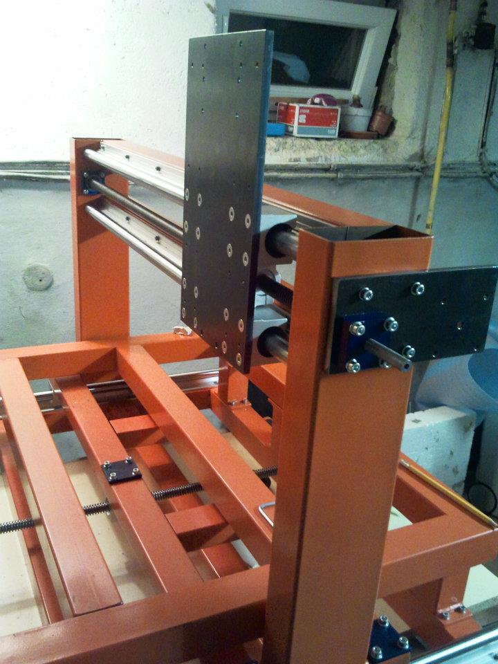 Tak drevena frezka predana a pustil som sa do stavby 1200x900mm z joklu 50x50mm pohyblivé časti uz mam vyriešené okrem osi Z, keby mal niekto nejaky dobry napad ako spravit osu Z tak si dám rád poradit zatial mam na Z-kto kupene podoprené 16mm tyče a voziky o velkosti 30mm a motor nema23 18.9 kg/cm (1.91nm), asi bude s 10mm plechu.