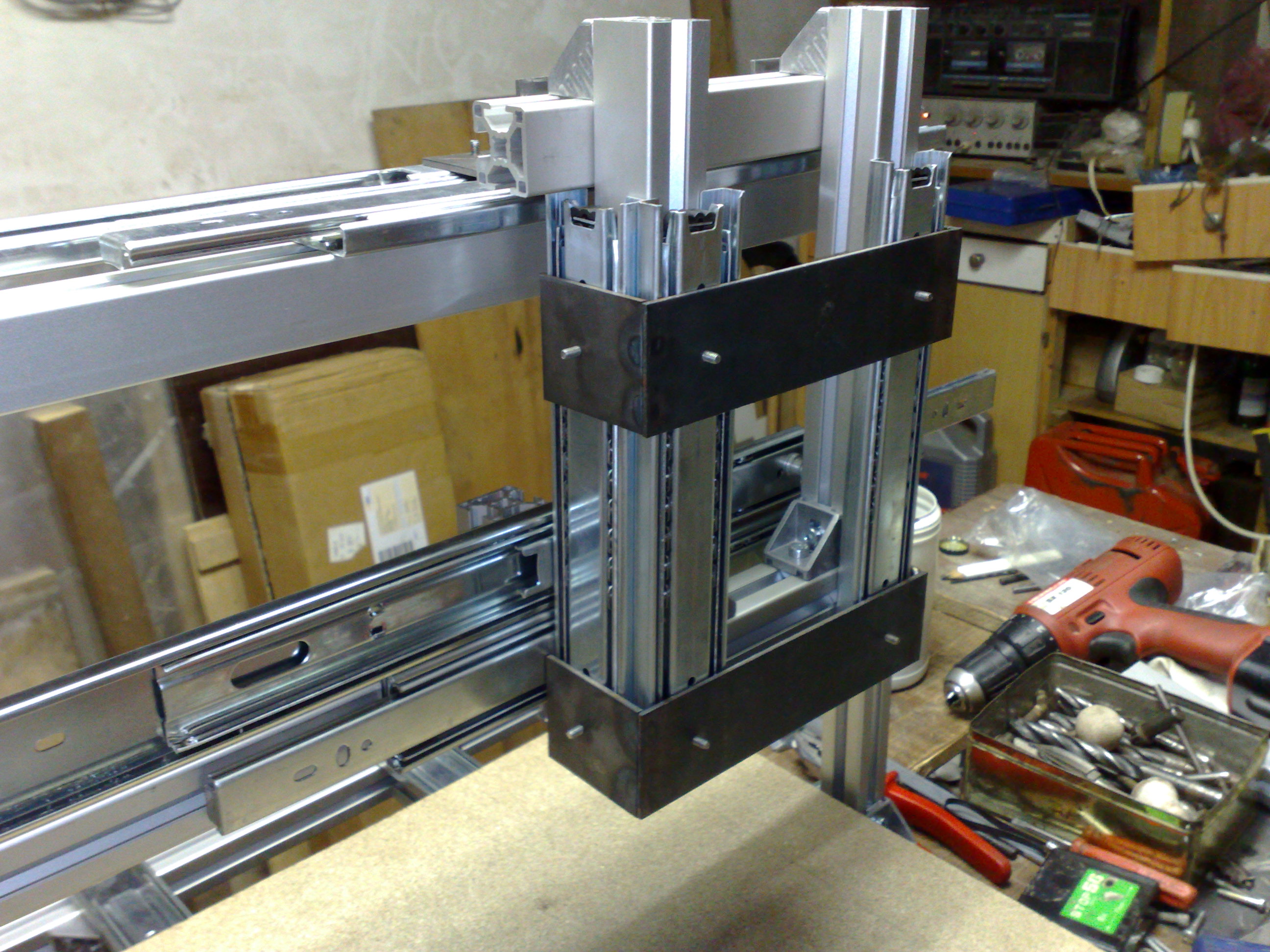 študujem na vysokej, 3 rocnik Elektro fakulty - odbor automatizacia .. ako je aj z nazvu zrejme jedno CNC uz mi doma beha, je to sice len drevacik ale uz kaceco vyfrezoval a s dobrou presnostou .. napr zvladol na DPS prejst pomedzi nozicky IO, cize uz dake skusenosti su .. tato masinka sa takisto nebude hrabat do zeleza ani hliniku .. necakam zazraky od tych suflikovych vysuvov preto su aj zdvojene a vzdy o 90° otocene .. ale bolo to jedine mozne riesenie pri rozpocte, ktory mi poskytla skola .. bude to ako predvadzacia HRACKA v labaku .. tu Y os som samozrejme zavetroval ako je vidno z dnesnych fotiek.. je nerealne aby to malo dobre vlastnosti na 500 mm ramene ktore drzia len 2 spojky :D :D rozmyslam ale, ako by som to zavetril poriadne, pod 45°uhlom .. s tymito dielmy .. asi ohnem dake vinkle a tak spravim spojky .. bude sa frezovat maximalne tak 2mm frezkami malym uberom, viac od toho ani necakam .. na tych maticiach nepozorujem rukou ziadne vole a ako vravim nejdem s tym do zeleza ani vyrabat dake presne diely a pri tom malom ubere s primeranou rychlostou to nebude robit problem