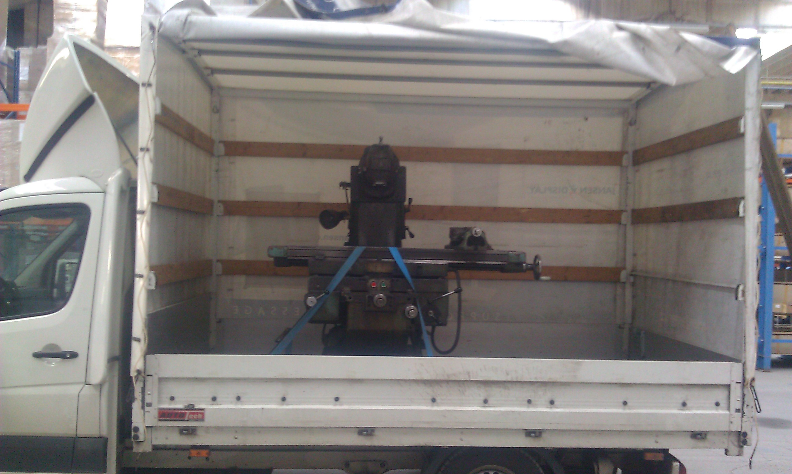 Ahoj, konecne mam prvni stroj v dilne. Poridil jsem si frezku TOS FA 3 U. Cesta byla docela silena, protoze bylo nasnezino, silnice klouzali a hlavne kombinace vysokeho stroje i auta je vrazedna kombinace. Nalozili mi ji na levou stranu a ja myslel, ze se snad v zatackach prevratim na bok. Az budu mit presne urcene misto, frezku shodim z palety a ukotvim. Casem pak zacnu s renovaci, lak je jiz pekne rozprazkany a oloupany.