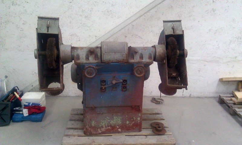 Zasilam dalsi fotografie z renovace lesticky. Postupne jsem odsrouboval oba motory. Jeden vazi kolem 50kg, tak jsem si je podrzel jesterkou, odsrouboval a prevezl. Z motoru musim stahnout remenice, olepit hridele a cele je necham opiskovat. Bude to rozhodne jednodussi nez se modrovat rozbruskou a kartacem v tezko pristupnych mistech. Po opiskovani je rozeberu, vycistim vnitrek, vymenim loziska a zpet smontuji. Podstavec brusky jsem zvenci ocistil od nateru a tmelu. To zatim byla nejvetsi pakarna. Tmel byl tvrdy jak kamen a kartacem bych nadelal takoveho prachu, ze bych ho do konce zivota neuklidil. Vzal jem tedy sabr s brutovou destickou a vse postupne oskrabal az na litinu. Zbytek pouze docistil kartacem (i tak z toho bylo prachu pozehnane). Jeste zbyva vnitrek, ktery je natreny pouze zakladem.