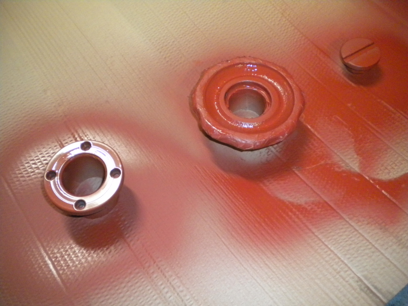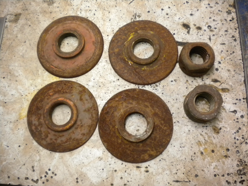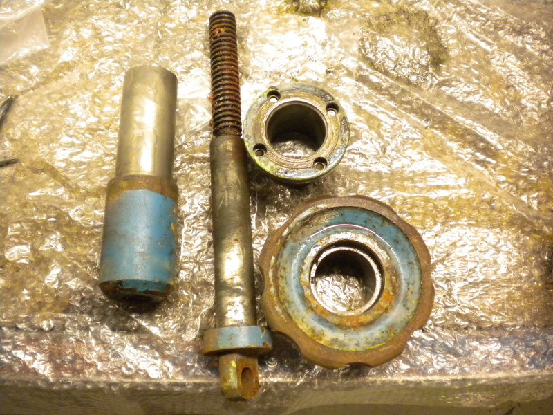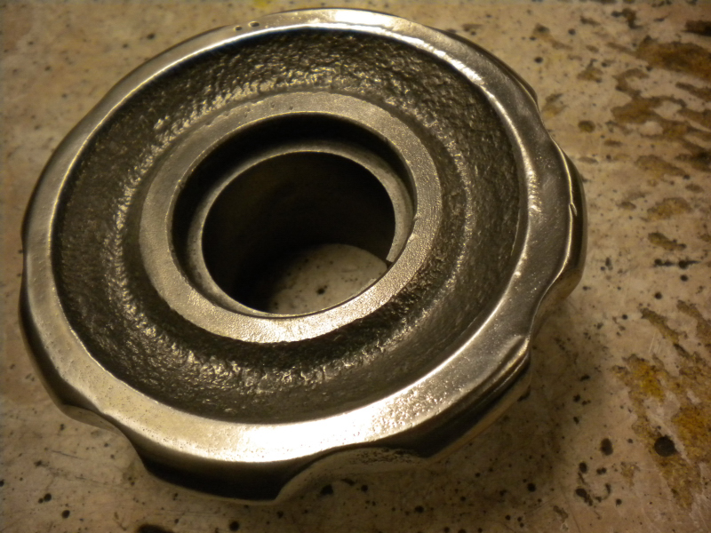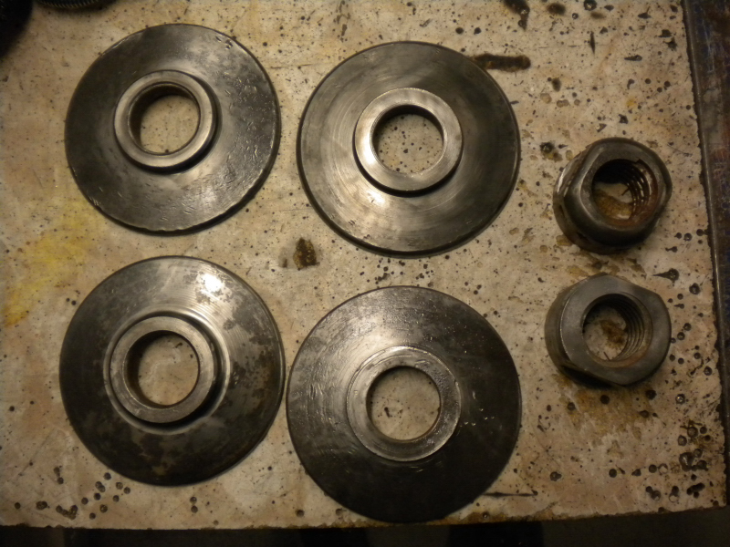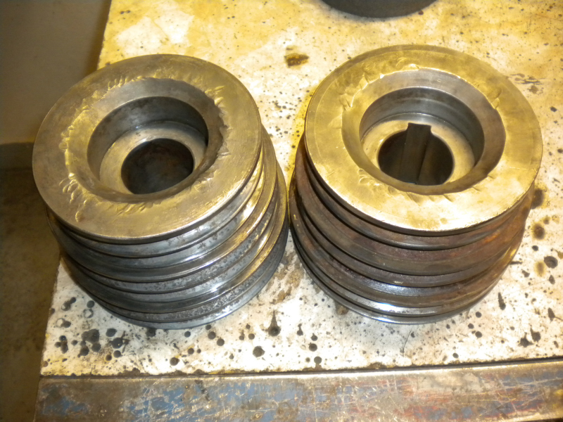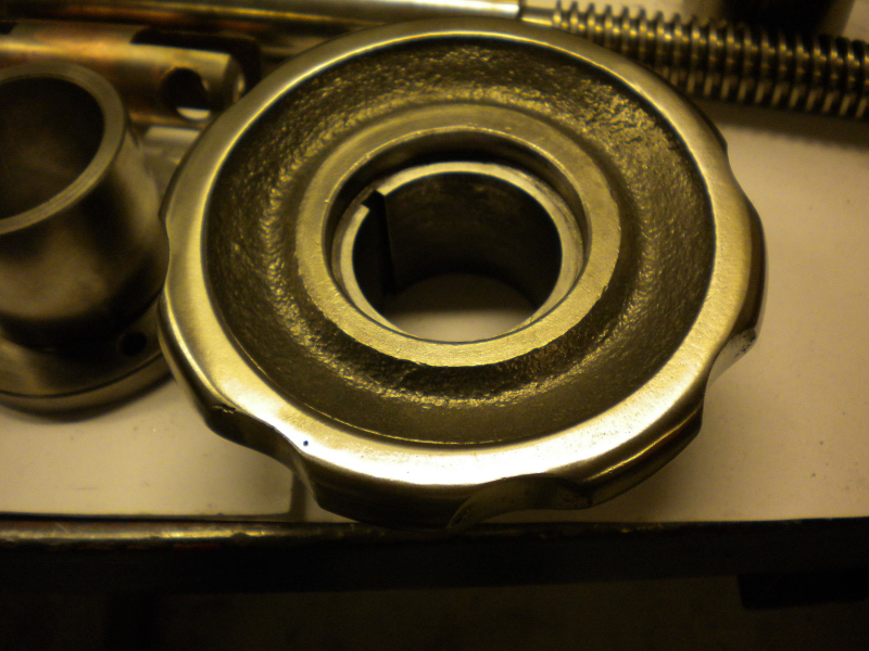 Dily, ktere budou bez povrchove upravy (teda rozmyslim se zda je alespon nenazinkovat) jsem zbavil koroze dratenym kotoucem na brusce. Jedna se o pritlacne talire, matice a remenice z vretena.