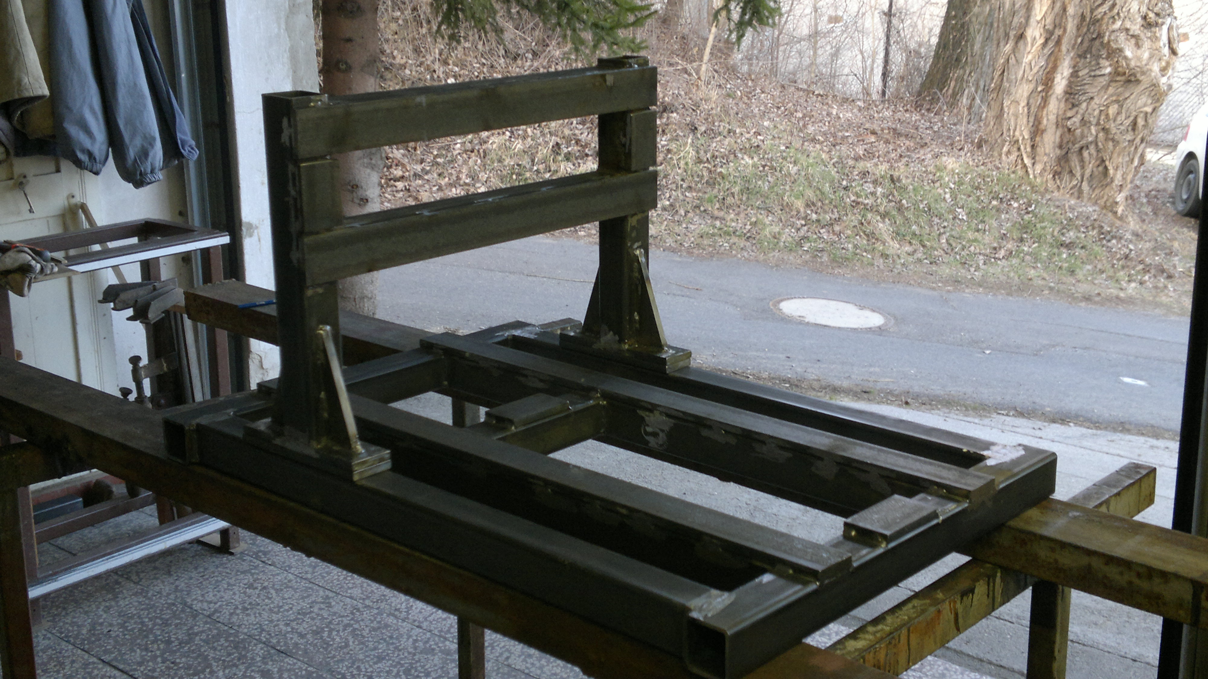 možná nejsem ve správné rubrice, ale vhodnější jsem nenašel. Po první postavené fréze jsem se pustil do druhé. Bude bytelnější a o něco větší. Rám je dvojdílný, posvařovaný z jeklů 50x50, síla stěny 4mm. Rozměr základny je 550x840. Jako vedení použiju podepřené tyče průměr 16mm. Pod nimi je pásovina 10mm, přibodovaná k nosnému jeklu. Nejdelší jekl se po přivaření pásoviny prohnul asi o 1mm. Čekal jsem, že to bude horší. Plochy pod podepřenými tyčemi nechám srovnat. S žíháním konstrukce nepočítám. Mám možnost konstrukci po srovnání nechat nakomaxitovat. To probíhá při teplotě 180 stupňů. Mám obavu, jestli se mi při této teplotě zase nějak neprohne nebo nezkroutí. Omlovám se za možná hloupý dotaz, mám blíž k elektrice. Díky za každý typ. Přikládám obrázek.