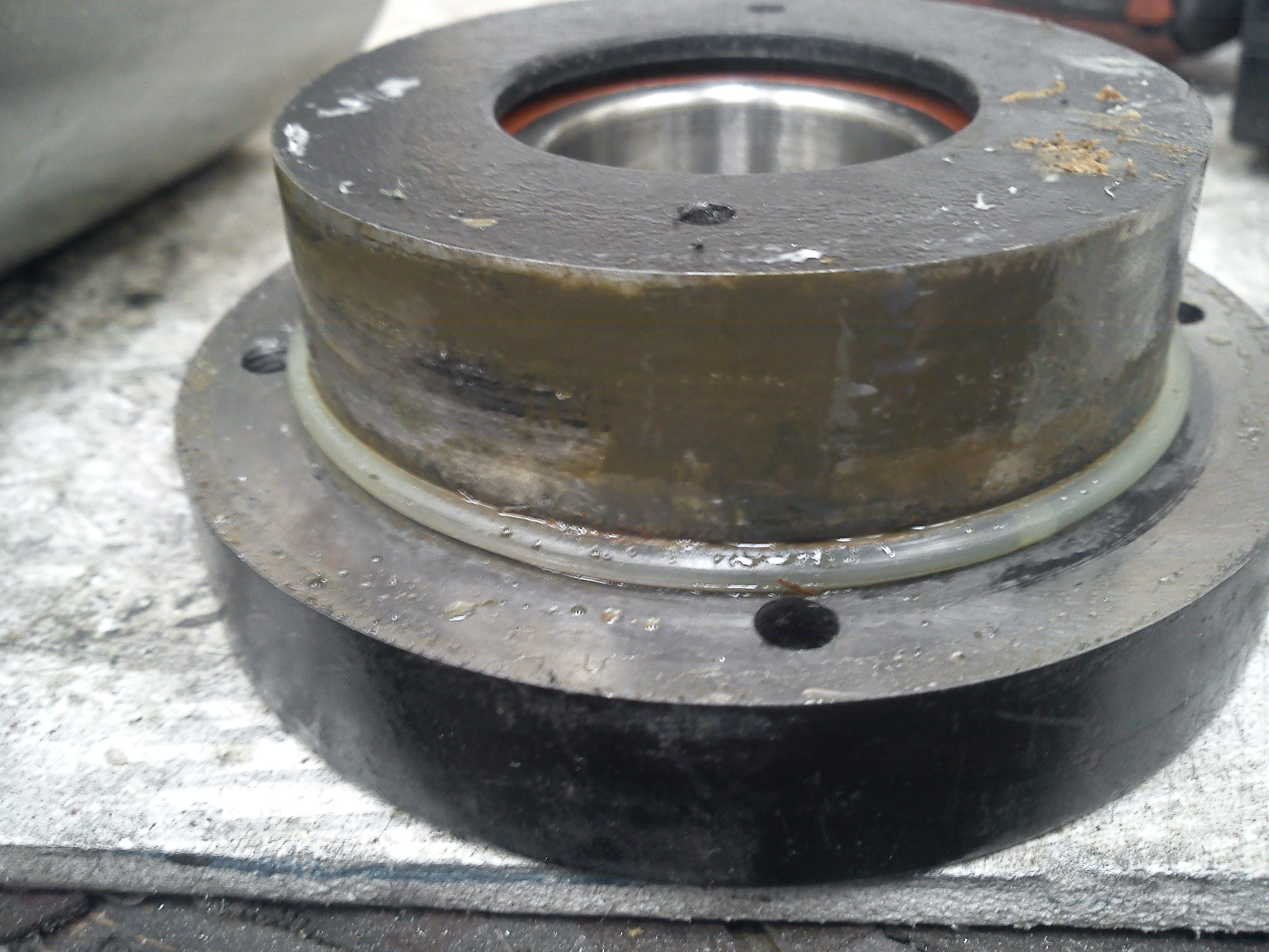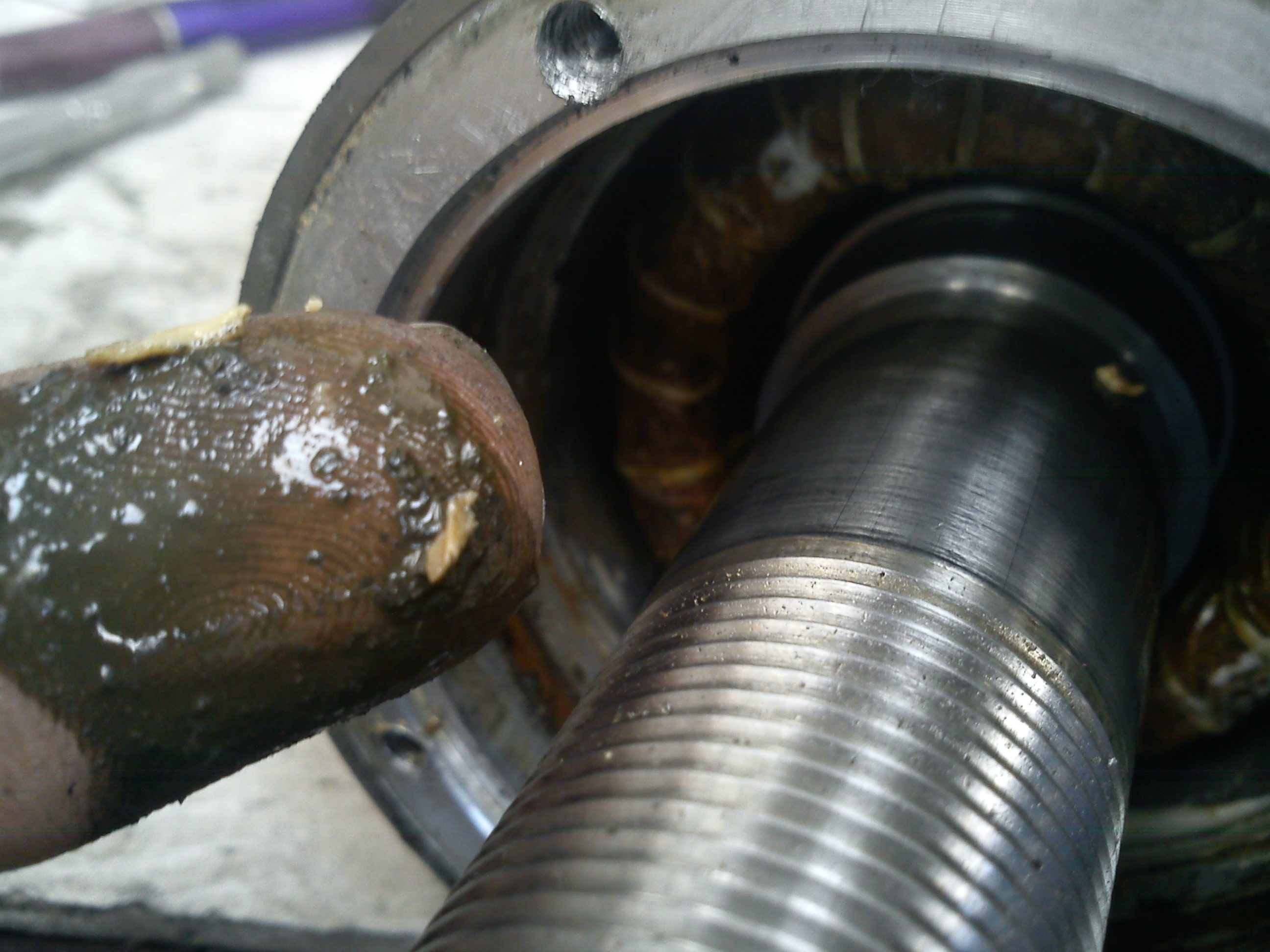 Na fotkách je i vidět bordel co byl mezi přírubou a tělem vřetene.